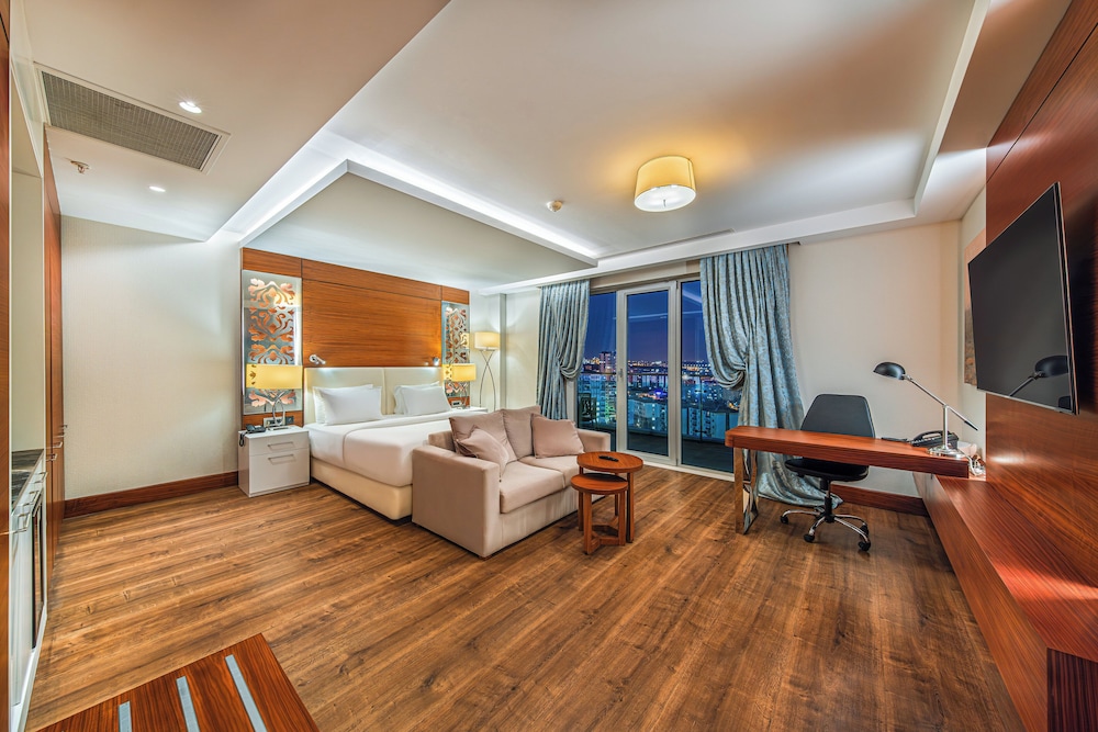 With a stay at Holiday Inn Ankara - Cukurambar, you'll be centrally located in Ankara, convenient to Cankaya University and Kocatepe Mosque. This hotel is within close proximity of Anadolu Show Center and Armada Tower & Shopping Center.Rooms Make yourself at home in one of the 140 air-conditioned rooms featuring minibars and LED televisions. Complimentary wired and wireless Internet access keeps you connected, and satellite programming provides entertainment. Conveniences include phones, as well as safes and desks.Amenities Be sure to enjoy recreational amenities, including an indoor pool, a sauna, and a fitness center. Additional features at this hotel include complimentary wireless Internet access and concierge services. Guests can catch a ride to nearby destinations on the area shuttle (surcharge).Dining Enjoy a meal at a restaurant or in a coffee shop/café. Or stay in and take advantage of the hotel's 24-hour room service. Quench your thirst with your favorite drink at a bar/lounge.Business, Other Amenities Featured amenities include complimentary high-speed (wired) Internet access, a 24-hour business center, and dry cleaning/laundry services. A roundtrip airport shuttle is provided for a surcharge (available 24 hours), and free valet parking is available onsite.