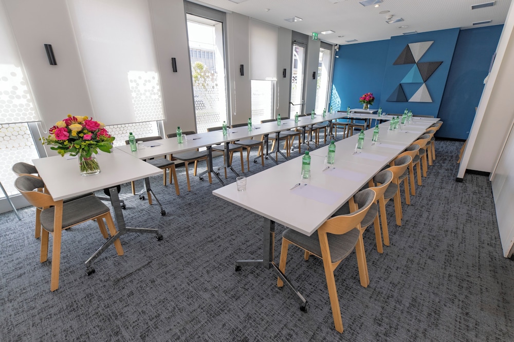 The three star Holiday Inn Express Geneva Airport is situated very near the Geneva Airport, the Centre de Congrès and the Exposition Palexpo. With its efficient and rapid service and advantageous prices, the hotel offers a bar, two conference rooms, a breakfast room, a spacious underground parking lot and a work area with Internet access located beside the reception desk. An airport shuttle is also available between the hotel and the airport. The hotel was constructed in 2003 and its modern style and happy, relaxed atmosphere attract an international clientele.