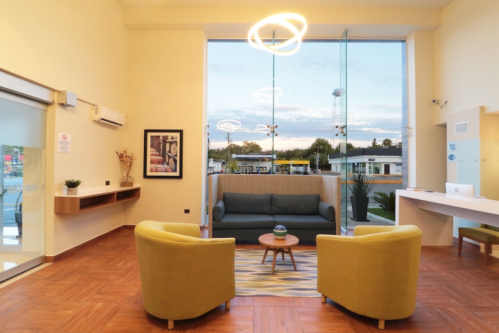 This hotel is strategically located in the financial and commercial heart of the city. Guests will find restaurants and links to the public transport network right on the doorstep. The hotel is located on the city's main avenue, just minutes away from the Plaza de las Culturas (200 m), Gran Plaza (300 m), Paseo del Rio (300 m), the Mall de las Aguilas shops (400 m), the Macroplaza (500 m) and the industrial zone (100 m).Renovated in 2010, this city hotel is housed in a modern, executive-class building and is ideal for business travellers and holidaymakers alike. It comprises a total of 98 welcoming rooms spread over 3 floors. Facilities on offer to guests at this air-conditioned establishment include a lobby area with a 24-hour reception and check-out service, a hotel safe, a currency exchange facility, a cloakroom and lift access. There is a cafe and a service restaurant, while guests will appreciate the wireless Internet access throughout the building. They can also take advantage of the room and laundry services and there is private parking for those arriving by car.The rooms are comfortable and excellently appointed, as well as being equipped with a host of amenities. All come with a private bathroom with a shower and a hairdryer, and offer a double bed. They are equipped with a telephone, satellite TV, a radio, Internet access, a safe and coffee making facilities. Furthermore, an ironing set, air conditioning and heating are provided in all accommodation as standard.This hotel features an indoor, heated swimming pool with a children's swimming area. Sports enthusiasts may enjoy a work-out in the gym and golf fans will find the Eagle Pass Golf Course just a 10-minute drive away.Guests may select their continental breakfast from a buffet.