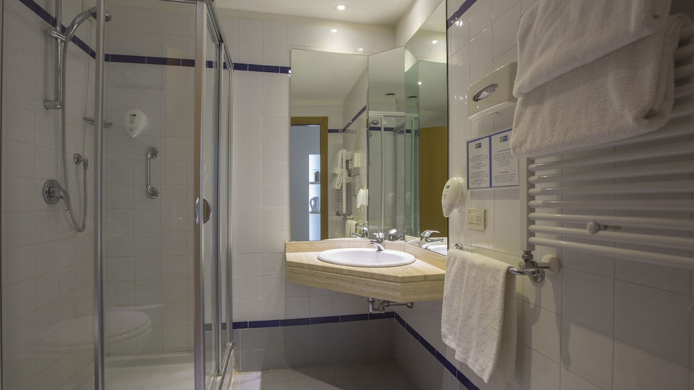 Free breakfast complimentary Wi-Fi and 24-hour dining are among the amenities that attract guests to the non-smoking Holiday Inn Express Rome - East. Free Wi-Fi cable TV and desks are furnished in all 86 rooms at the seven-story Holiday Inn Express; some rooms also include sofa beds coffeemakers and bidets. Guests delight in complimentary breakfast treats and enjoy snacks or drinks 24/7 in the on-site lounge. The hotel also offers a business center and free parking. The Holiday Inn Express is six miles east of central Rome sites such as the Trevi Fountain the Colosseum and the Spanish Steps. The Santa Maria del Soccorso metro stop is just over a mile north of the hotel. The hotel is less than 15-minute walk from the Togliatti train station. St. Peter's Basilica is seven miles west in Vatican City. The Roma Est shopping center is five miles away and Ciampino - G.B. Pastine International Airport is nine miles.