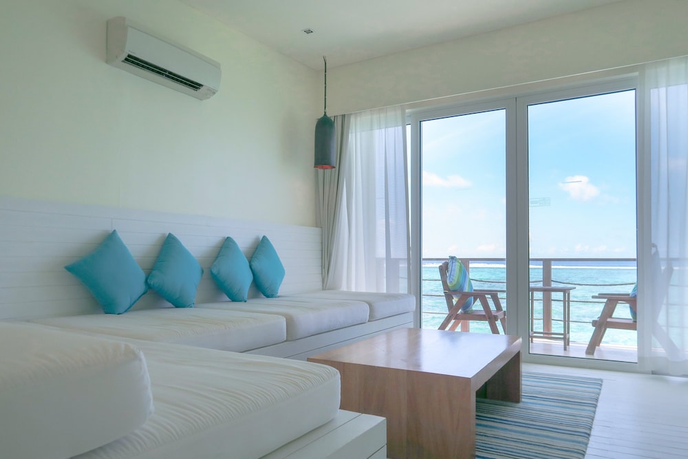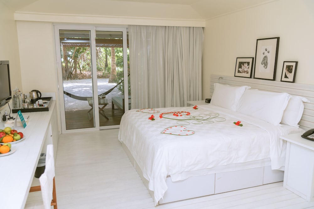 Holiday Inn Resort Kandooma has 160 villas in four different styles of beach and garden villas, beach houses, family villas and overwater villas. Each villa type has been designed with cool clean lines with white washed timber providing warm texture to the unshod foot. Large picture windows mean that you are only a glance away from the great blue outdoors. The connected ipod generation need not fret as the island is completely covered with wi-fi broadband. Hotel has a various of activities which good for all kind of guests from family to honeymooners, massages, sunset cruise, diving, snorkelling, kids club.## LocationResort is 40 min away from Male Airport with mandatory speedboat transfer. Surcharges apply, please contact hotel to arrange transfer and payment directly.## Distance35 kms to city centre35 kms to the nearest airport (malé international airport)## RoomsThis semi-detached garden & beach view villa comes with a mp3/ipod docking station and both indoor and outdoor showers. Relax and enjoy the open view to the beach.## RestaurantThe resort has several restaurants & bars serving a wide selection of cuisine including Asian, Western and Mediterranean-Thai. Kandooma Cafe, The kitchen, The deck, Bokkuraa Coffee Club & The Lounge available at hotel.## Exterior160 white color low rise villas.## LobbyThe lobby is medium in size.