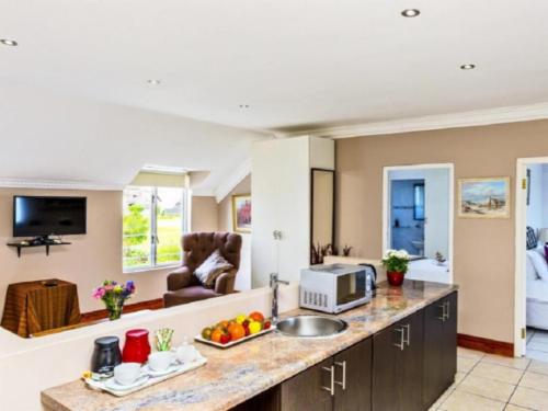 Guests hoping for a tranquil seaside getaway will not be disappointed when choosing to stay at Holiday Guesthouse, Langebaan. It is ideal for couples or groups visiting this coastal gem of the Western Cape.This lovely guest house offers comfortably furnished rooms ideal for couples. Each room has an en-suite bathroom as well as a kitchenette. There is also a spacious unit available for families or groups. It has three bedrooms, three bathrooms and a living area with a kitchenette.Even though all of the rooms and units have basic self-catering facilities, the guest h