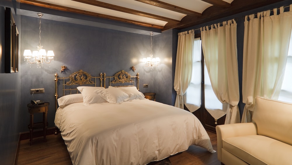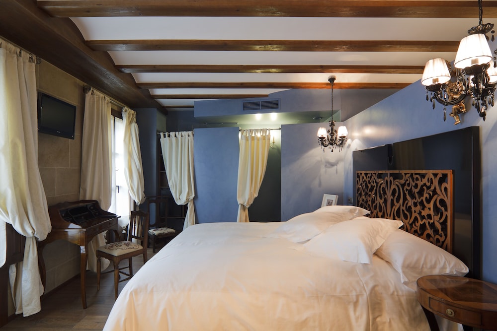 The historic Hospederia de los Parajes has its own spa centre with hammam hot tub and wine therapy. There is free Wi-Fi access and stylish design throughout.Guests can taste a range of wines in the Hospederia's 15th-century wine cellar. There is also an elegant restaurant and a spacious bar area.Rooms at the Hospederia are built around a patio covered with a glass ceiling. Each offers full heating and air conditioning and a balcony or terrace. Some rooms only face onto the interior patio. They also come with a dressing room a bathrobe and slippers.Los Parajes lies in Laguardia capital of the Álava La Rioja wine region. This Medieval city is just 23 km from Logroño-Agoncillo Airport.