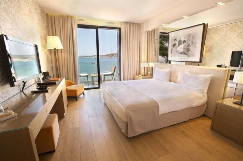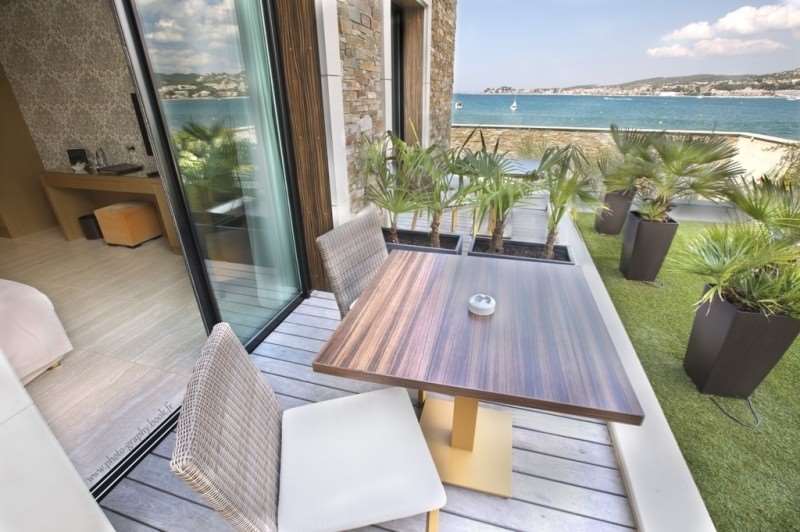 This hotel has a unique design and is in the sandy beach of La Gorguette, 2 km from the center of Sanary-sur-Mer. It offers an outdoor pool, a spa and a hot tub on the roof./All rooms are comfortable and well equipped./It serves a buffet breakfast and a continental breakfast./You can dine in the restaurant and have a drink and enjoy the sea view at the bar Le Panoramic./The property is 18 km from the railway station 33 km from Toulon and Cassis, and is connected to the A50 motorway.