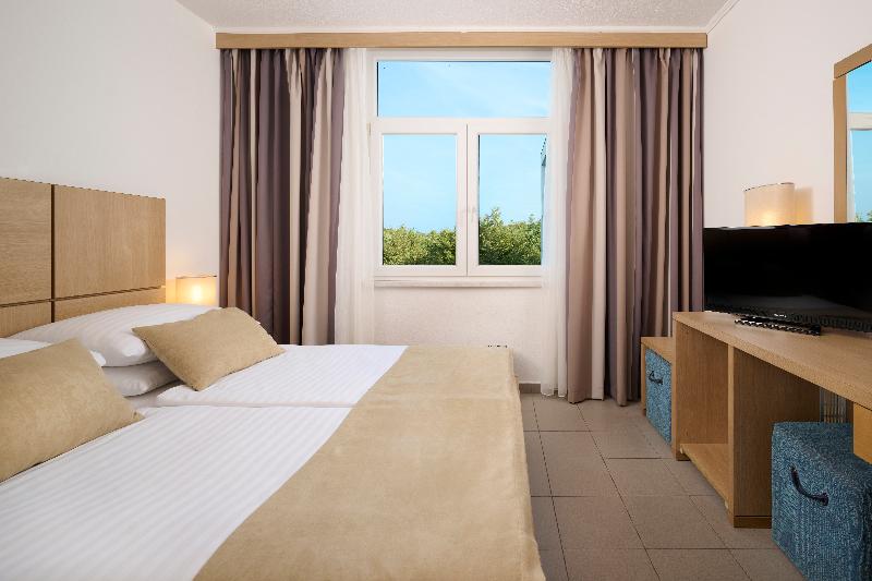 The Hotel Beli Kamik is surrounded by a picturesque oak forest and enjoys a great location only 150 metres from the sea in the former fishermen's village Njivice. Free WiFi access and free on-site parking are offered.The comfortably furnished rooms with all necessary amenities are suitable for families with children. The magnificent surroundings with pebbly beaches and a crystal-clear sea will add to a pleasant vacation.Beli Kamik has 2 restaurants where buffet breakfast and dinner are served. The dinner includes unlimited wine beer juices and water. Relax in the TV lobby bar or pamper yourself at the beauty and hairdresser's salon.Guests can use fitness facilities free of charge or pay an additional fee to book a massage treatment. Sports activities such as cycling tennis or mini golf can are also available at a surcharge.Malinska is 5.5 km from the hotel the city of Krk is 16 km away and Rijeka is at the distance of 28 km. Rijeka Airport can be reached in 8 km.