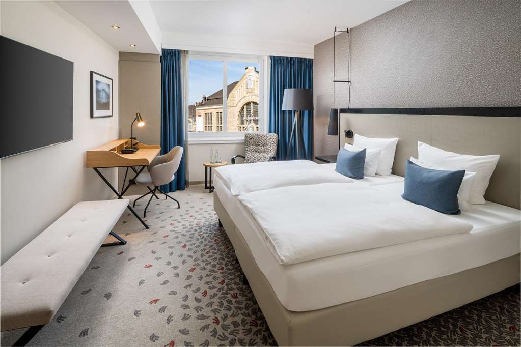 Property Location Centrally located in Bielefeld, Hotel Bielefelder Hof is minutes from Old Town Hall and Nicolai Church. This 4-star hotel is within close proximity of Theater Bielefeld and Old Market Square.Rooms Make yourself at home in one of the 161 air-conditioned rooms featuring minibars and flat-screen televisions. Wireless Internet access surcharge keeps you connected, and cable programming is available for your entertainment. Bathrooms have shower/tub combinations and hair dryers. Housekeeping is provided daily, and rollaway/extra beds can be requested.Rec, Spa, Premium Amenities Make use of convenient amenities, which include wireless Internet access surcharge and discounted use of a nearby fitness facility.Dining Satisfy your appetite at the hotel's restaurant, which serves lunch and dinner, or stay in and take advantage of room service during limited hours. Quench your thirst with your favorite drink at a bar/lounge.Business, Other Amenities Featured amenities include a computer station, complimentary newspapers in the lobby, and a 24-hour front desk. Event facilities at this hotel consist of conference space and meeting rooms.