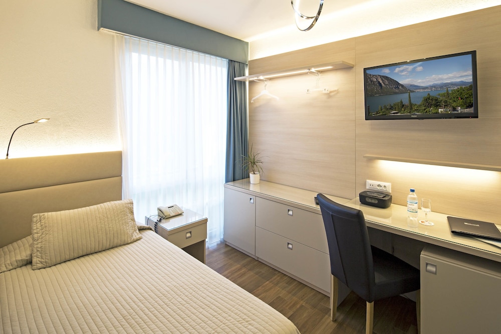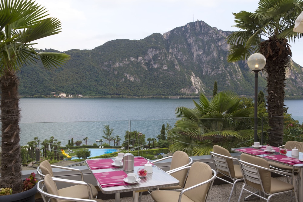 The Hotel Campione in Bissone on the banks of Lake Lugano offers you a lakeside pool with a panoramic terrace and free Wi-Fi in the entire hotel.In front of the restaurant you will find a panoramic terrace with views over the mountains San Salvatore and Brè the lake and the bay of Lugano.The big casino is only a 10-minute walk away from the Campione hotel. Free public parking with limited spaces is possible at a location nearby and private garage parking spaces are available on site for an extra charge.