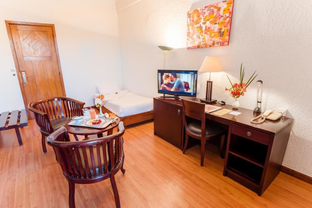 Offering an indoor pool and a spa and wellness centre with sauna and steam bath Hotel Colbert is located in Antananarivo. Guests are also invited to the fitness centre. Free WiFi is available in public areas.With a view of the city the rooms at Hotel Colbert are air-conditioned and features a flat-screen TV with cable channels as well as free WiFi access. Featuring a shower private bathroom also comes with a hairdryer and free toiletries. Each room is equipped with an internet cable.A continental vegetarian or English breakfast is available daily. There is an International restaurant and guests can also sample a drink by the pool and the solarium.Other facilities offered at the property include meeting facilities luggage storage and shops (on site). The hotel is 17.2 km from Royal Hill of Ambohimanga. Ivato Airport is 13 km away.
