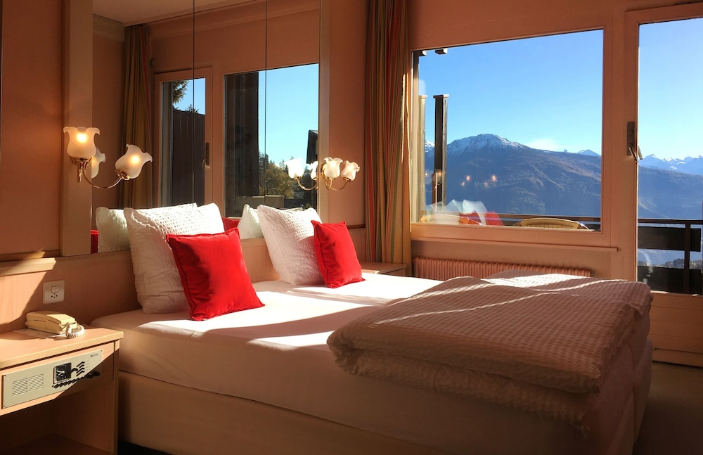 De la Foret hotel is located 800 m from the centre of Crans Montana and its shopping facilities, right at the entrance of the village, 500 m away from Montana railway station. The nearest ski bus stop is 50 m away and the cross country ski track is 1,5 km from the property. The hotel is situated 14 Km by road from Sierre.The hotel facilities and services include reception, lift, lobby, day room, reading corner, conference facilities, internet corner (with extra charge), wireless internet access in the lobby and in the bar (with extra charge), ski boot room, ski storage room, piano bar, breakfast room, restaurant, terrace and shuttle bus for skiers (with extra charge) to Violette Station. It also provides a Wellness centre with fitness room, sauna and massage service (all with extra charge). The rooms are equipped with TV, telephone, radio, safe (with a deposit), bathroom with hair dryer and bathtub/shower.The hotel has its own free covered parking and park garage (with extra charge).Address: Route De La Combaz 19, 3963 Crans Montana, Switzerland.