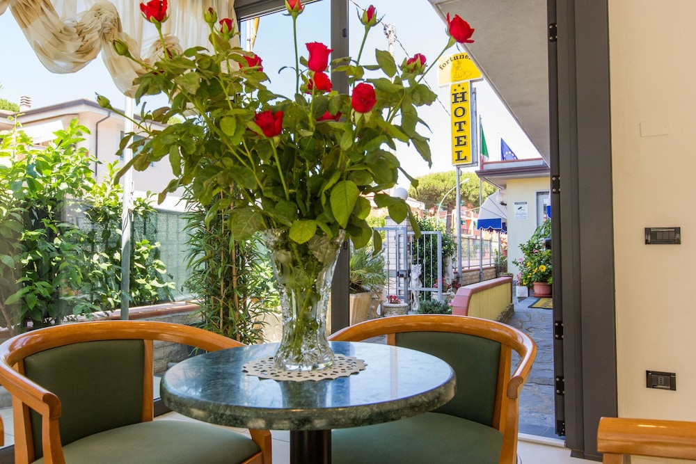 Since 1987, the Hotel Fortunella welcomes all its guests in a familiar atmosphere offered by the Sorrentino family, hoteliers by tradition, who over the years have been able to preserve and improve the typically Italian style of the hotel, reinterpreting the refined sensibility of the art of the Mediterranean way of life. The property is located in Lido di Camaiore, a seaside resort forefront that, with its special characteristics, stands among the most qualified tourist destinations.The 25 guest rooms are elegantly furnished ensuring maximum comfort for a pleasant and relaxing stay. All rooms are equipped with private bathroom with shower, hairdryer, balcony, direct dial telephones , safes, color televisions with satellite reception, air conditioning hot and cold. Some rooms have a balcony where you can enjoy the wonderful view of the sea with its beach and the Apuan Alps, with its marble quarries.In the restaurant it will be served a large, rich and healthy buffet breakfast, and it will be served at the table lunches and dinners with menus personally supervised by the owners. In a calm and quiet atmosphere, the Hotel Fortunella will surprise you with elegance and style providing maximum comfort for an unforgettable stay.