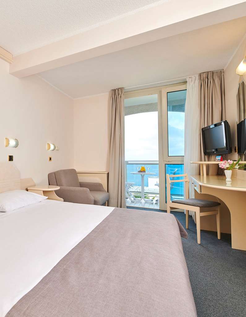 Set only 200 metres from a beach the Hotel Laguna Gran Vista in Porec offers a breathtaking view of the green bay and the turquoise open sea. It features an outdoor pool surrounded by sun loungers a restaurant and an aperitif bar. Free WiFi is provided.All rooms are air-conditioned and feature a TV. Private bathrooms come with a shower. Some have a balcony.An array of activities can be enjoyed on site or in the surroundings including cycling football handball tennis or diving. Various entertainment programmes are provided both for adults and for children. If you book half board you also enjoy free drinks at dinner.The historic town of Porec is 5 km away and can be reached by local bus that stops near the hotel. Pula Airport is at a distance of 60 km.