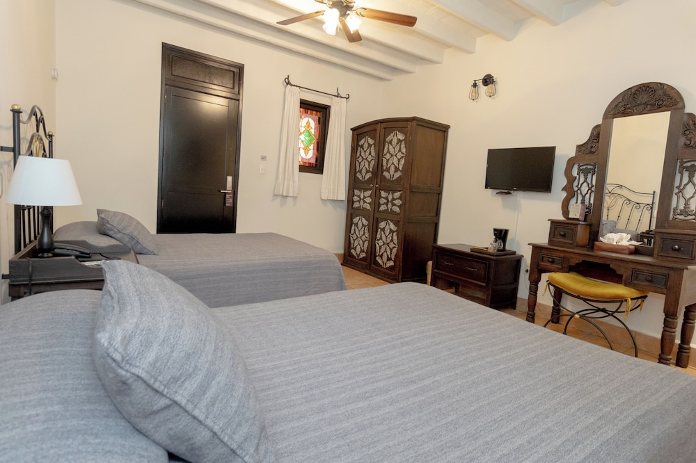 Hostal De La Noria is located just 2 blocks from Oaxaca Cathedral and the Zócalo Square. It offers a charming central courtyard free Wi-Fi in reception and a rooftop terrace with city views.Each air-conditioned room at Hostal De La Noria features warm décor and offers a balcony cable TV and a coffee machine. The private bathrooms include free toiletries and a hairdryer.The on-site Asuncion restaurant serves typical Oaxacan cuisine while the Los Chapulines bar offers drinks and snacks. Bar service is also available on the terrace.Free secure parking is available at Hostal De La Noria and staff can arrange car rental and city tours. Museums restaurants and bars can be found within a 5-minute walk of the guest house.