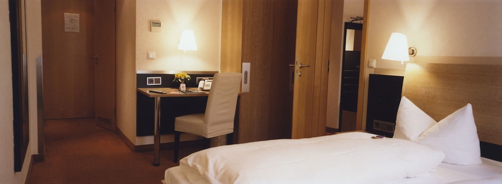 Hotel with Bavarian decoration. Located close to the Central stationand pedestrian area, with tram stop no. 18 and 19 just in front of the hotel.Perfectly connected to the fair ground and the airport. Most quiet andwell equipped rooms. Some also with air-conditioning. Free Wi-Fi andfree use of the public computer in the lobby. Generous buffet-breakfast included. Small hotel bar. Parking.