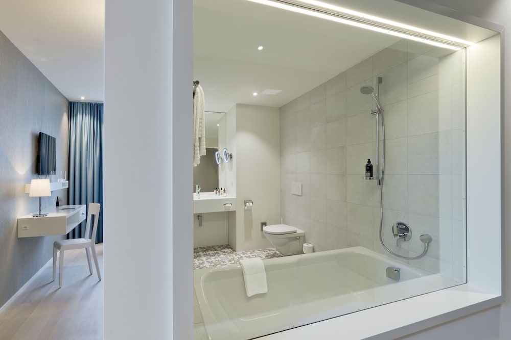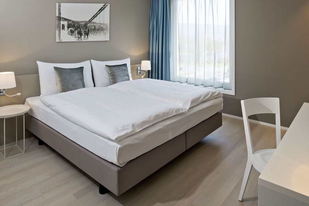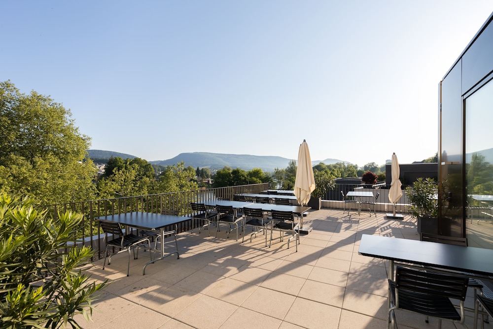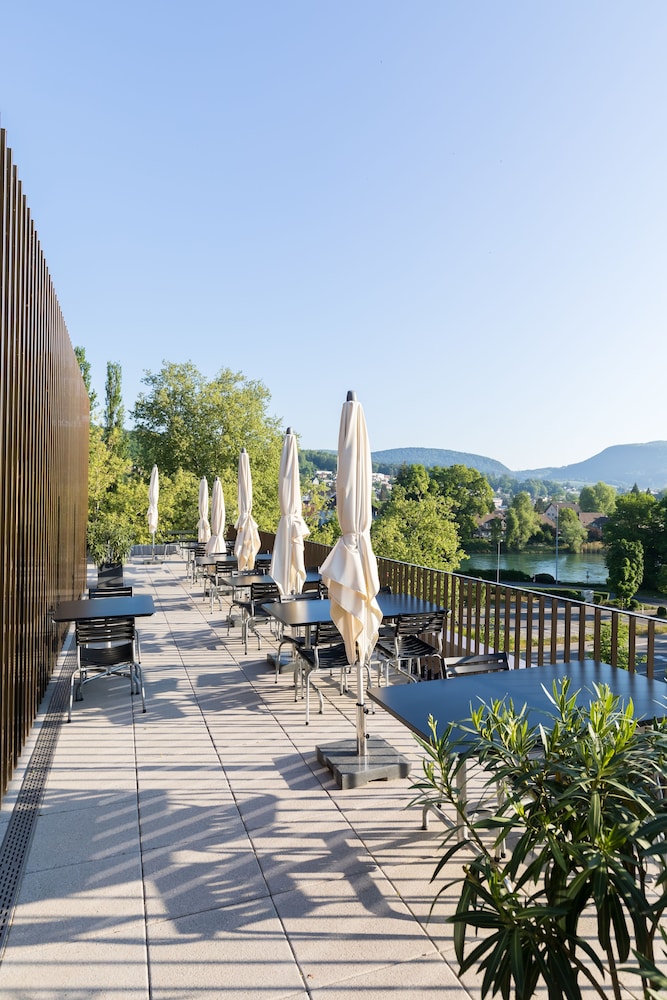 The 4-star Hotel Kettenbrücke is a fully renovated hotel, just opened in March 2016. The hotel is located in the old town in the city of Aarau at the historic city wall, next to the river Aare and the ancient bridge "Kettenbrücke". The hotel offers 24 stylish, modern and spacious bedrooms and 3 suites. All bedrooms and suites are in a warm color scheme with wooden floors and equipped with flat screen televisions, a high speed Wireless Internet connection, spacious rain showers or bath tubs and nespresso machines. In addition the hotel has a stylish bar and lounge, a restaurant offering fresh international and regional dishes, a private member club and meeting and event rooms as well as a roof terrace with a view to the river Aare.