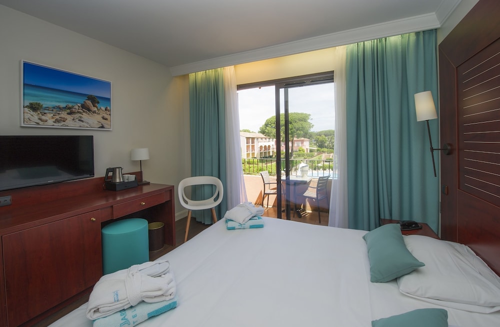 When you stay at Hotel Les Jardins De Sainte Maxime in Sainte-Maxime, you'll be by the sea and close to La Croisette Beach and Saint Tropez Citadel. This family-friendly hotel is within close proximity of Les Cigales Beach and Sainte-Maxime Beach.Rooms Make yourself at home in one of the 126 air-conditioned rooms featuring LCD televisions. Complimentary wireless Internet access keeps you connected, and satellite programming is available for your entertainment. Bathrooms have bathtubs or showers and hair dryers. Conveniences include phones, as well as laptop-compatible safes and desks.Amenities Enjoy a range of recreational amenities, including an outdoor pool, an indoor pool, and a steam room. This hotel also features complimentary wireless Internet access, babysitting/childcare (surcharge), and a television in a common area.Dining Grab a bite to eat at the hotel's restaurant, where you can take in a garden view and dine alfresco (weather permitting). Or stay in and take advantage of room service (during limited hours). Quench your thirst with your favorite drink at a bar/lounge. Buffet breakfasts are available daily for a fee.Business, Other Amenities Featured amenities include a business center, a 24-hour front desk, and multilingual staff. Event facilities at this hotel consist of conference space and meeting rooms. A shuttle from the hotel to the airport is provided for a surcharge (available on request), and free self parking is available onsite.