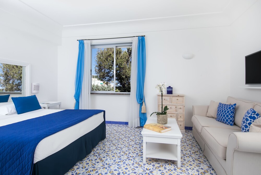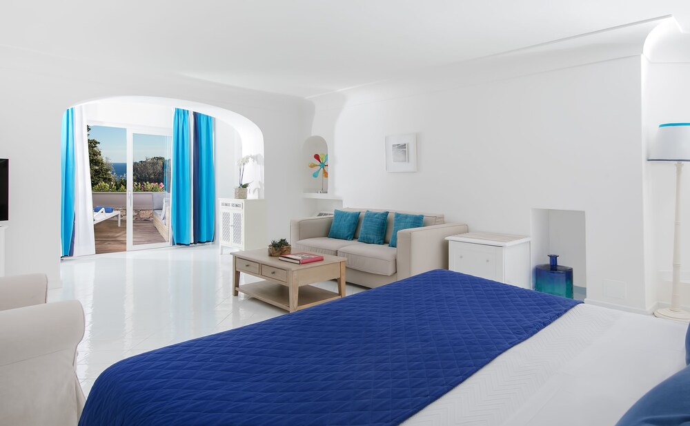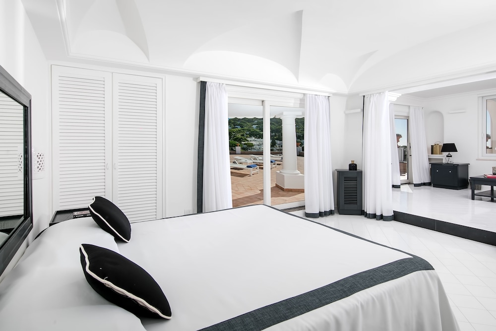 Just 150 metres from the shops of Capri's Via Camarelle the Mamela offers free Wi-Fi a private garden and an outdoor swimming pool. The Marina Piccola beach is a 10-minute drive away.The hotel boasts the unique architecture of Capri Island with arches vaults stuccoes and marbles. The sun terrace is equipped with free sun beds and parasols. Towels for the swimming pool are also available.Each room at Hotel Mamela comes with decorated tiled floors and bright unique furnishings. Rooms are equipped with air conditioning and a flat-screen satellite TV and some offer views of the Mediterranean Sea.The bathrooms are spacious and luxurious. Each features large windows mosaic tiles and a bath or shower.Breakfast is a generous buffet of pastries croissants and cakes. Drinks include tea coffee and fresh fruit juices. During summer drinks and snacks are served on the sea-view terrace.