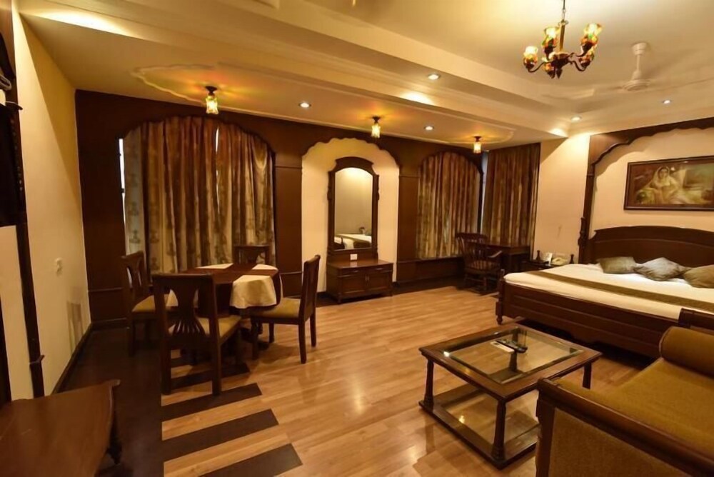 The hotel is located close to the Rajputana Palace in Jodhpur just 2 Kms away from the Jodhpur Airport, near the Panch Batti Circle. The main market, bus stand, railway station and Umaid Bhawan Palace lie within a 3 kms radius of the hotel and are easily accessible.The air-conditioned hotel is a premier business class hotel that offers supreme comfort to its guests. Located in the heart of the city, the hotel provides spacious rooms that exhibit a class all of their own. Apart from providing fine dining facilities, the hotel offers all the modern amenities required by travellers. Facilities include a lobby, hotel safe, currency exchange facilities and both room and laundry services.The hotel provides classy and luxurious rooms. All the rooms are spacious and feature a host of modern amenities, including an en suite bathroom with a shower and bathtub, as well as a direct dial telephone, satellite TV, Internet access and an ironing set.Guests may take a dip in the hotel's azure-blue swimming pool.