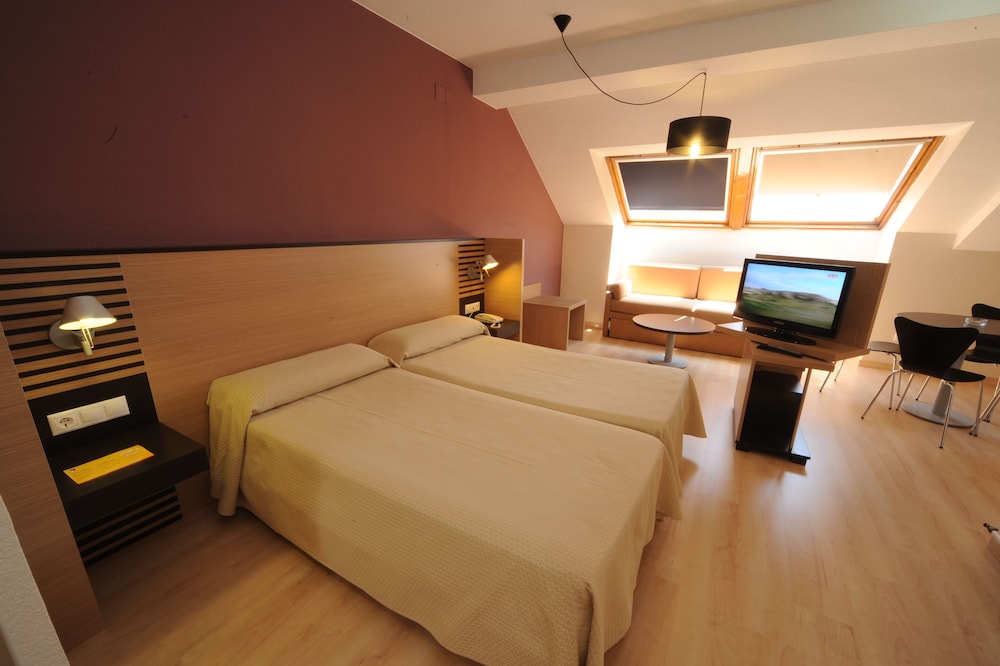 This hotel is located on the main avenue in Jaca from which you can admire the impressive Ciudadela built in 1595 and just 20 minutes from the Astun-Candanchu ski slopes.The hotel is also located along the celebrated Camino de Santiago pilgrimage footpath in the foothills of Peña Oroel with its snow capped Pyrenean Mountains.Facilities include a restaurant and a cafe a disco a swimming pool for adults and children during the summer months and garage parking.
