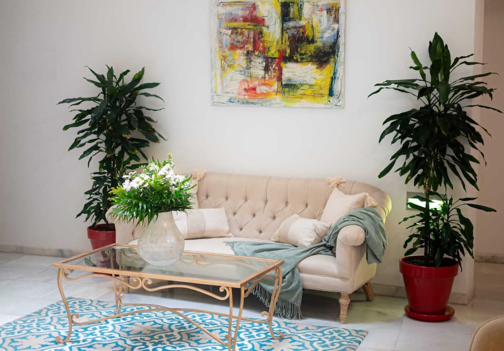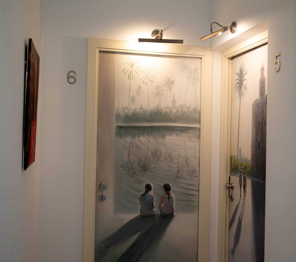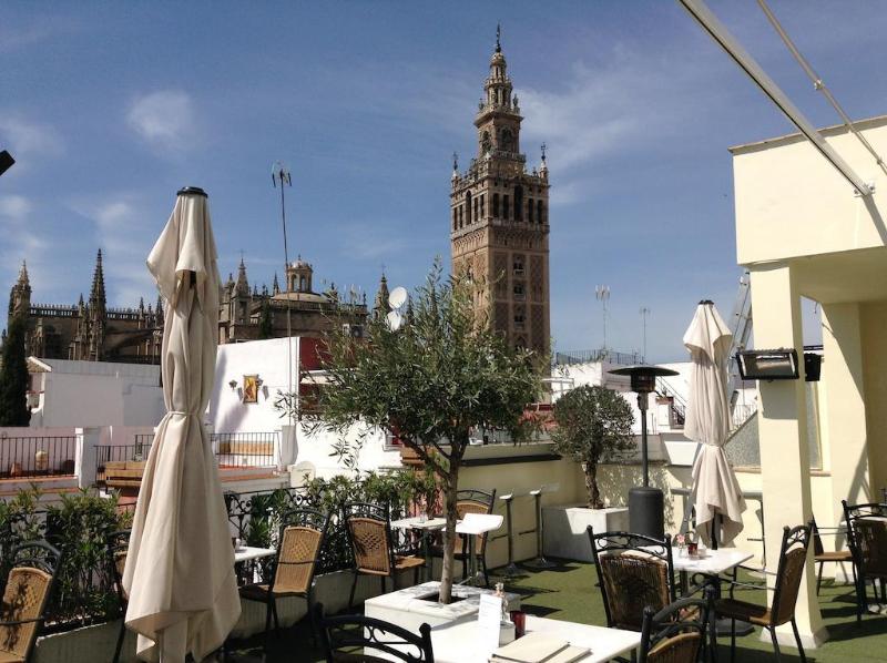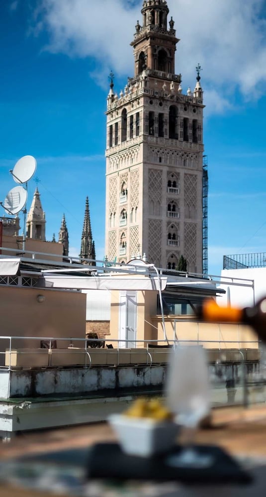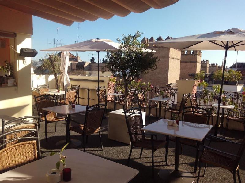 The Hotel Alcazar Palace located just 100 meters from Seville Cathedral and the Alcazar Palace, was originally a house from the XVIII, nowadays fully restored. From the room the guest can see the famous Giralda Tower in Seville, and in less than 5 minutes walking are the Murillo Gardens, among other beauties of the city.Rooms at Hotel Palacio Alcazar stand out for its minimalist, modern and homely decor and offer Wi-Fi, air conditioning and a private bathroom with hairdryer.This hotel also features an elegant terrace with panoramic views of the city where you can enjoy a snack or a drink. In addition, near you will enjoy many restaurants and tapas bars .The hotel is 8 minutes' walk from the banks of the GuadalquÃvir, Maestranza Bullring and the Golden Tower. You can drive to Seville Airport in just 15 minutes.Old town is a great choice for travellers interested in architecture, tapas and food.