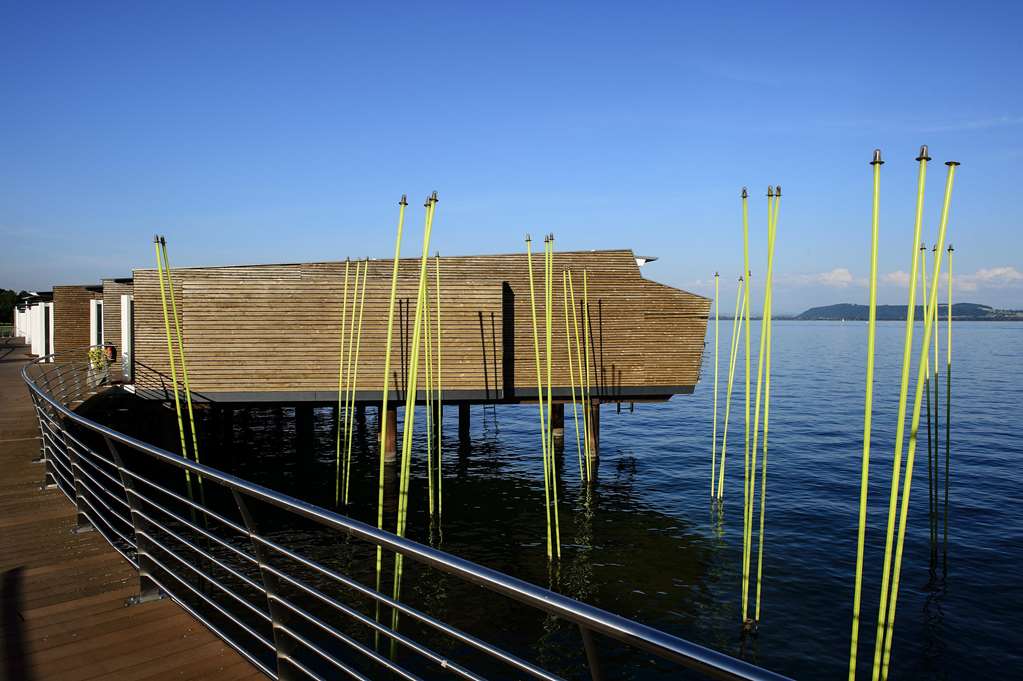 The hotel offers luxury pavilions with breathtaking views of Lake Neuchâtel and the Alps. Half are built on the Lake, supported by pillars. The pavilions private terraces, located on the water, offer direct access to the Lake. The elegant restaurant of the Palafitte Hotel serves delicious Swiss and international cuisine.