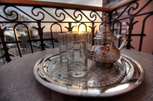 The hotel is situated in walking distancce to the Medina and approx. 4 km from the Jemaa El Fna Square.Services and facilities include: 24 hour reception, Wi-Fi internet access,elevator, restaurant, cafe, terrace, spa with hammam,massage, sauna, jacuzzi and barber/beauty salon ( all with extra charge).The guest rooms are equipped with: A/C, TV, telephone and Wi-Fi internet access.Address: 33,Rue Ibn Al Qadi, Hivernage, Marrakech, Morocco