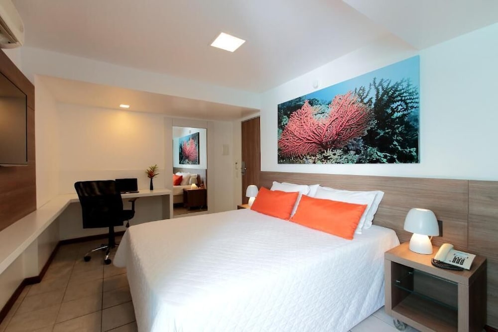 Situated in a privileged location just steps from Ponta Verde Beach Hotel Ponta Verde is nearby most principal tourist attractions in the region. It offers a restaurant free WiFi and a daily buffet breakfast.All rooms are at Hotel Ponta Verde are equipped with air conditioning and contain an LCD TV a minibar and a private bathroom with a hairdryer. They are bright and modern and some rooms boast sea views.The daily breakfast buffet offers a variety of fresh fruits breads and cold meats. Guests can also enjoy Brazilian and international specialties as well as a selection of drinks in the The Coral Restaurant which provides panoramic ocean views.Facilities include a business centre an adult and children's pool. A 24-hour front desk service is on-hand and rooms for conventions and events are available for hire.The Hotel Ponta Verde is less than a 30-minute drive from the Zumbi dos Palmares International Airport. Maceió city centre is only 5 km away.