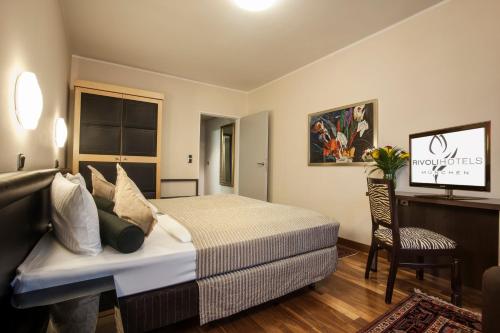 Situated steps from the Munchen Harris Train Station and boasting an on-site bar breakfast service and conference facilities Hotel Rivoli places our guests within a short walk of a number of restaurants. The six-story Hotel Rivoli houses 55 rooms all equipped with cable TV minibars hairdryers and high-speed internet capabilities. Non-smoking accommodations are available. Guests can greet the day with the breakfast buffet offerings and then toast the end of the day with a cocktail at the bar. Meeting space and parking are available. Hotel Rivoli is situated in Munich's Sendling district adjacent to the Munchen Harras Train Station and an Asian-style spa. Guests are within a five-minute walk of a variety of restaurants as well as five subway stops from Marienplatz Square and two miles from Oktoberfest festivities. Munich Airport is 28 miles away.