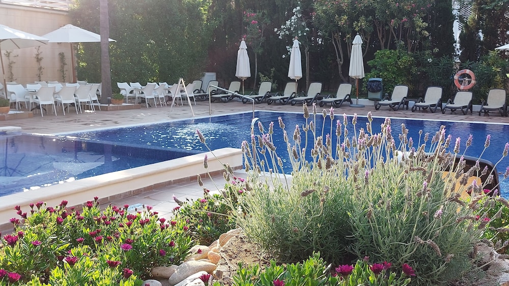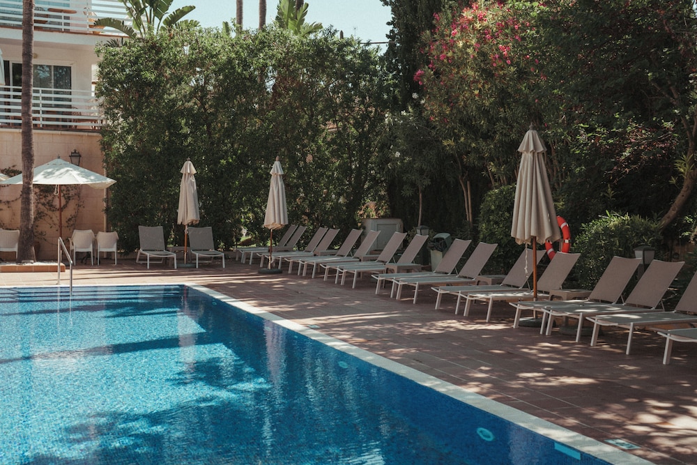The hotel is located in the quiet area of Paguera, Mallorca, and within only 150 m of the beach. The centre of Paguera is located about 300 m from the hotel, with its shops, bars and restaurants. The bus line that connects to Palma city is right next to the hotel. Palma Mallorca Airport is about 35 kms away. The air-conditioned beach hotel features a wine and dine restaurant, cafe and bar and a TV room. There are a total of 74 guest rooms spread over 4 floors at this establishment. The double rooms have an en-suite bath or shower. Further amenities include a telephone, hire safe, satellite TV, minibar and either a balcony or terrace. Individually regulated air-conditioning is a standard feature in all accommodation. Outside, there are swimming pools with an integrated children's area. Guests can also play table tennis. The hotel offers a buffet at breakfast and dinner.