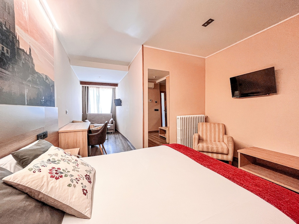 This property is located 5 minutes-drive from the famous Aqueduct of Segovia. Strategically located between the main arteries into the city, the hotel offers all the necessary amenities to make you feel at home, an elegant decor and superb local restaurants. It offers rooms overlooking the garden or the Aqueduct, comfy and well equipped. The restaurant guarantees a traditional cuisine, typical dishes of the region and the most innovative creations result of research of the kitchen equipment from the products offered by the market every day. The lunchroom is the perfect place for a good conversation between wine and tapas portions or if you prefer succulent dishes. In summer the terrace and enjoy the best products on the grill.