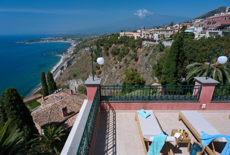 Villa Schuler boutique hotel since 1905 is surrounded by its own extensive subtropical gardens with full views of Mount Etna and Naxos Bay. Most rooms offer a furnished balcony or terrace.This family-owned hotel enjoys a central and quiet position in Taormina 600 metres from the cable car to the beach and a 2-minute walk from the central Piazza IX Aprile and Corso Umberto. The hotel offers mountain bikes from March to November and a shuttle service to the seaside from May to October.Relaxation areas at Hotel Villa Schuler include the lobby the cool winter garden the sun terrace a botanical garden and the Palm Terrace Orangery pavilion. A TV room a small library internet terminals and a piano room are also available.A generous à la carte breakfast is served in the breakfast room in the Orangery on the terrace overlooking the coastline or directly in the guest rooms.During summer Hotel Villa Schuler may only be available for long stays of 2 or more nights.