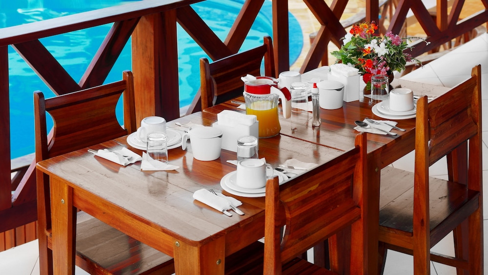 There are 60 standard rooms, sleeping up to four people and comfortably furnished. Room facilities include a wall mounted TV, air-conditioning, en-suite bathrooms with hot running water and a minibar. In front of each room is a colourful hammock, offering a perfect place to relax in the cool breeze with a book, or take a quick nap. The hotel offers an adult and children’s pool, wet bar and a large recreational area with a pergola.