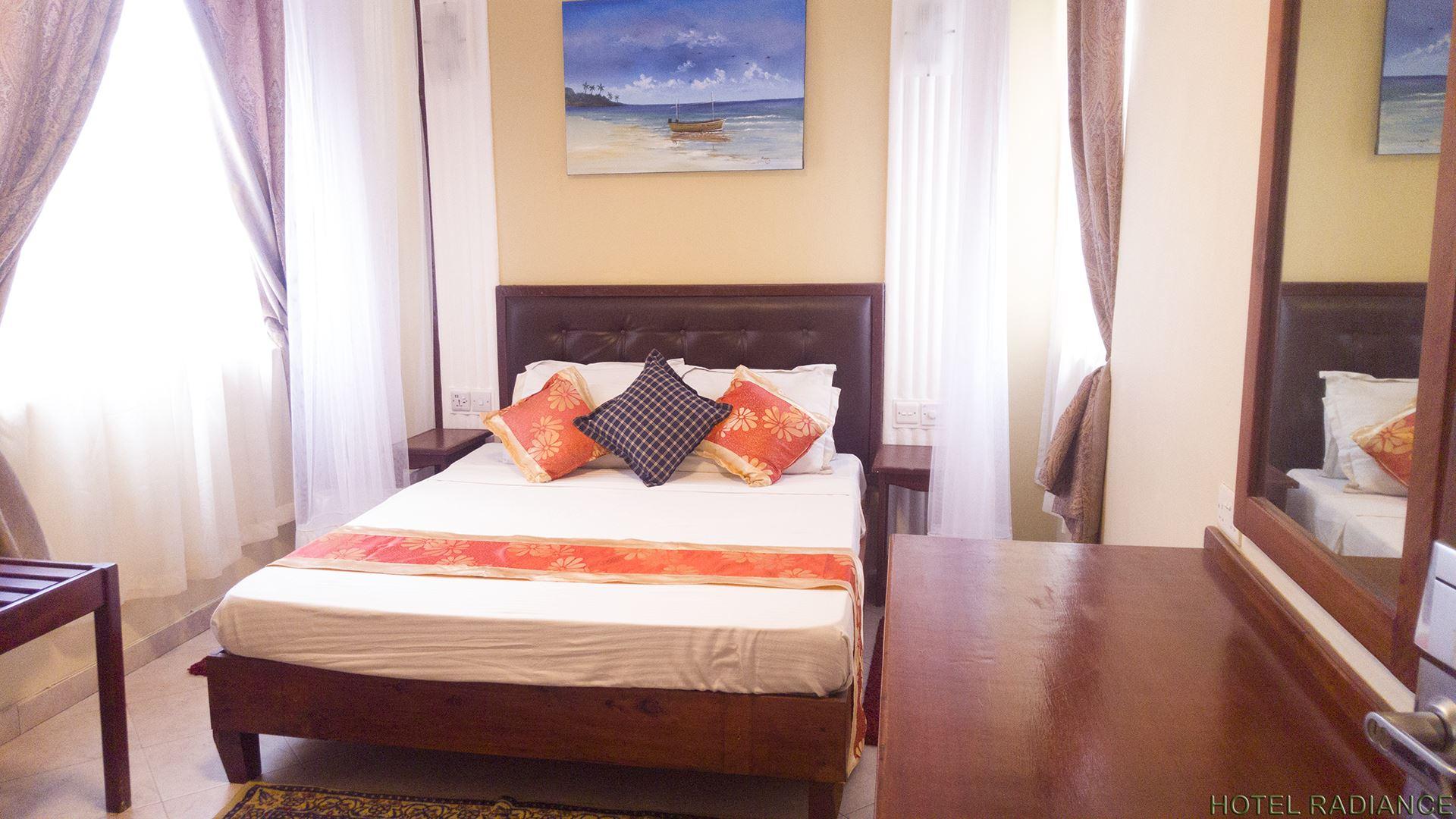 Hotel Radiance is located along Mombasa Road, approximately ten minutes’ drive from Moi International Airport. The strategic location in the centre of Mombasa Island, provides easy access to the central business district and the major tourist attractions of Mombasa. Accommodation at the hotel comprises a total of 30 elegant rooms which have all been furnished and designed with sound proof windows to provide comfort and a peaceful atmosphere within the busy city environ. All rooms are fully air-conditioned and equipped with en-suite bathrooms, satellite TVs and Wi-Fi access. <