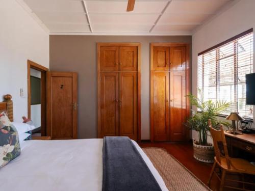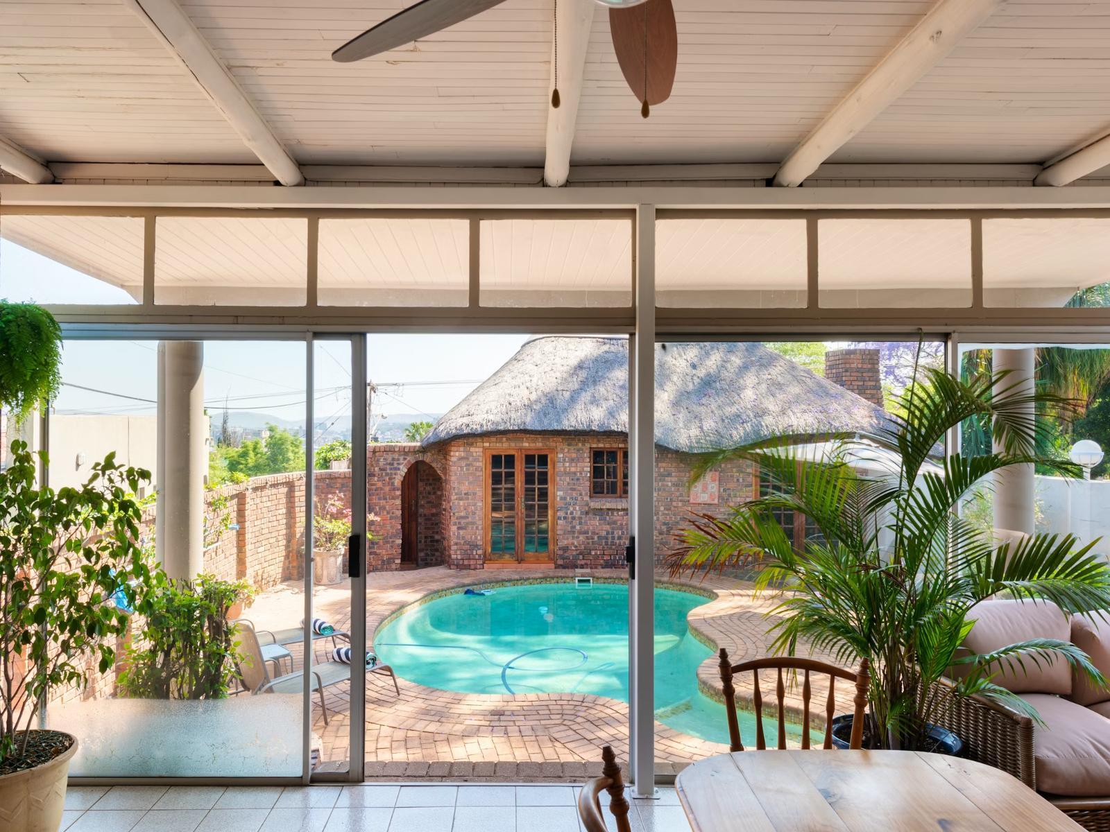 House Falcon Muckleneuk is conveniently located approximately 32 metres from the well-known Zuid-Afrikaans Hospital, doctors entrance, making it a popular choice for medical travellers and visiting professionals.This elegant guesthouse offers four well-appointed rooms, a swimming pool, and a tranquil garden with an outdoor communal patio where guests can relax or enjoy a morning coffee. During jacaranda season, the garden offers classic Pretoria views.Each room is tastefully decorated in a classic, elegant style and includes a fan, work desk, microwave, tea- and coffee-