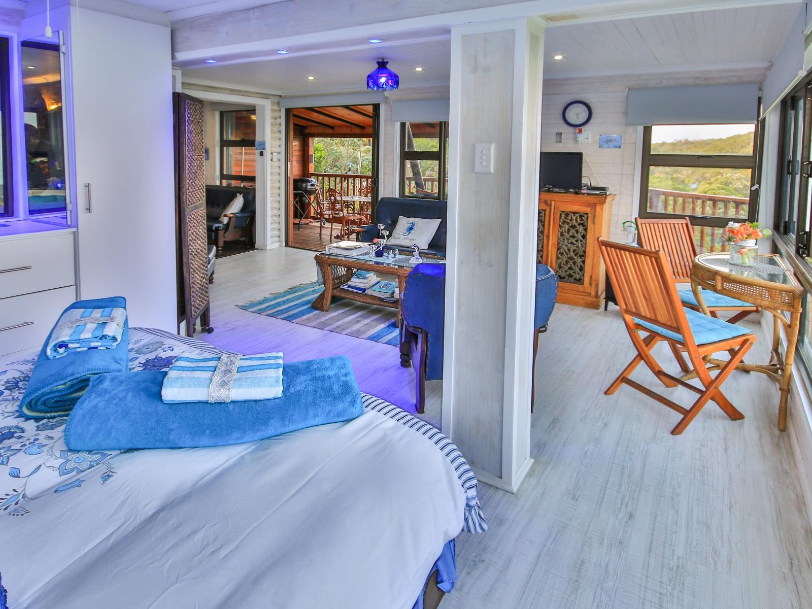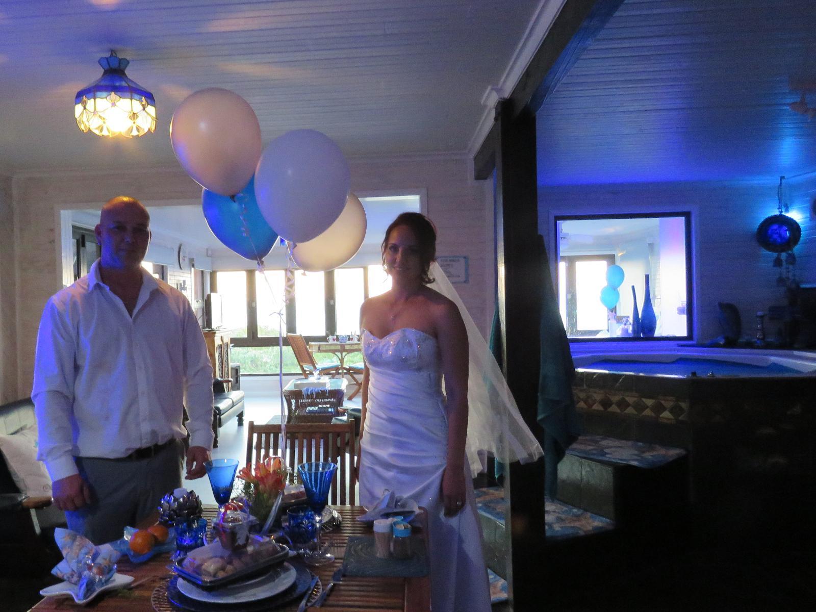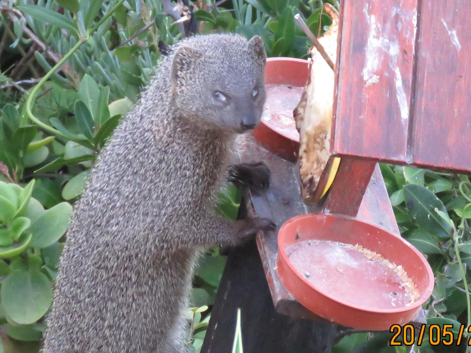 Houtboschbay Honeymoon Suite, situated in picturesque Aston bay, offers a splendid option for clients seeking peaceful and romantic accommodation. We try to make every occasion special such as honeymoons, birthdays, anniversaries, engagements or just a peaceful rest.Just a quick step away from a pristine white beach, the location is ideal for walks ,fishing and swimming, or simply relaxing whilst enjoying the abundant bird life and the sound of the breakers. 92 Species of birds have been identified around the Houtboschbay bird restaurant. The large spotted Genet, Grey Mongoose and
