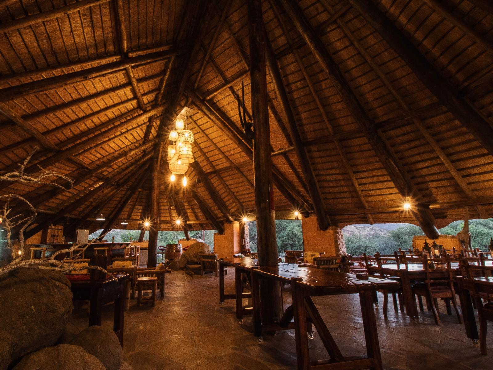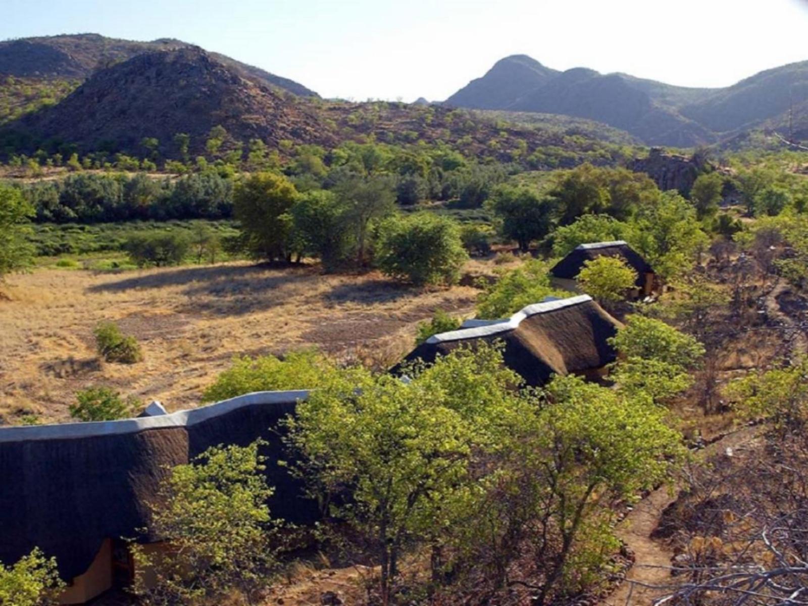 Situated on a Private Nature Reserve, Huab Lodge is an award-winning premier Lodge with 8 spacious bungalows strategically situated in Damaraland on the route to and from Etosha. A mecca for bird watchers and photographers. Enjoy the Huab Sound of Silence.Despite its size, the unique main building blends well into its surroundings, with the irregular thatch roof mirroring the mountain range on the southern banks of the river. Open on all sides, natural rock islands protrude into the main lapa area, and at the rear, the bar offers striking views of the swimming pool, and along the r