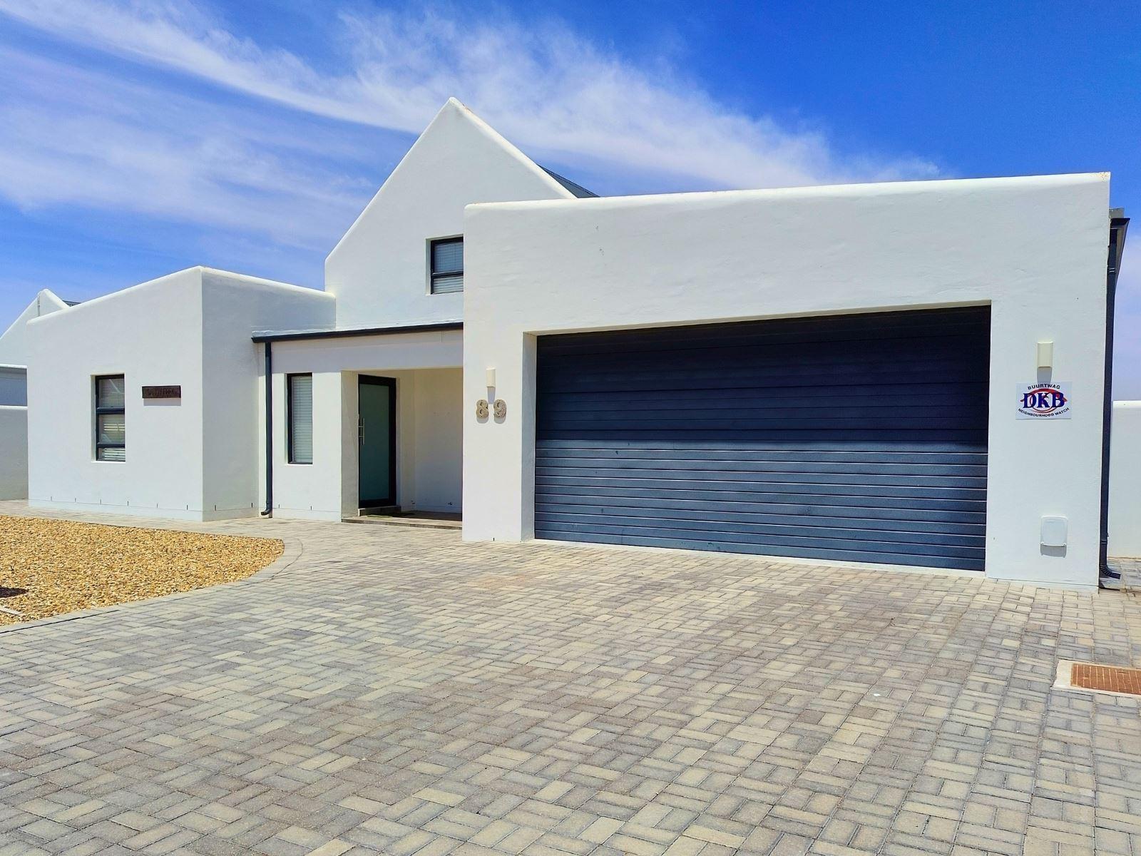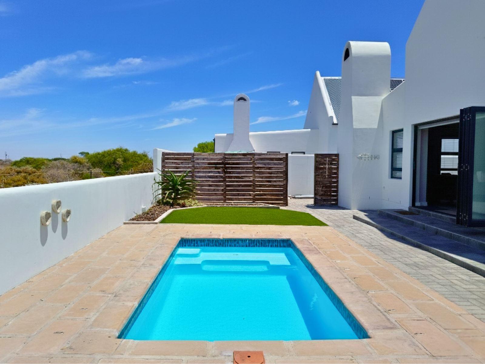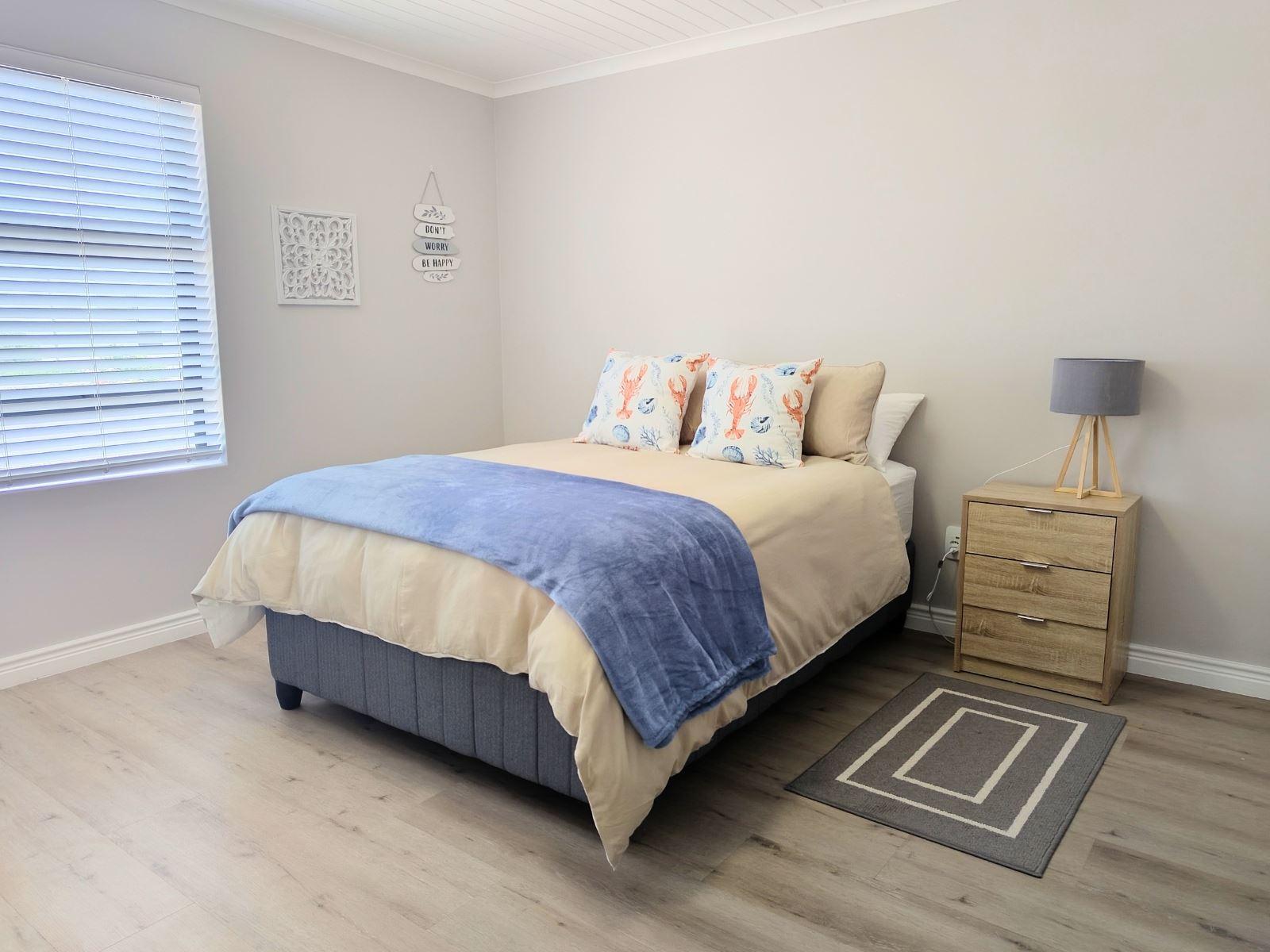 Sandy Feet, is a modern self-catering holiday home located in Dolphin Beach, Dwarskersbos. Designed for families or friends, this stylish coastal retreat offers space, comfort, and relaxed West Coast living.The home features three bedrooms and two bathrooms, comfortably accommodating up to six guests.The main bedroom is furnished with a double bed and includes an en-suite bathroom with a modern shower. The second bedroom also offers a double bed, while the third bedroom has two single beds—ideal for children. The two guest bedrooms share a full family bathroom fitted with bo