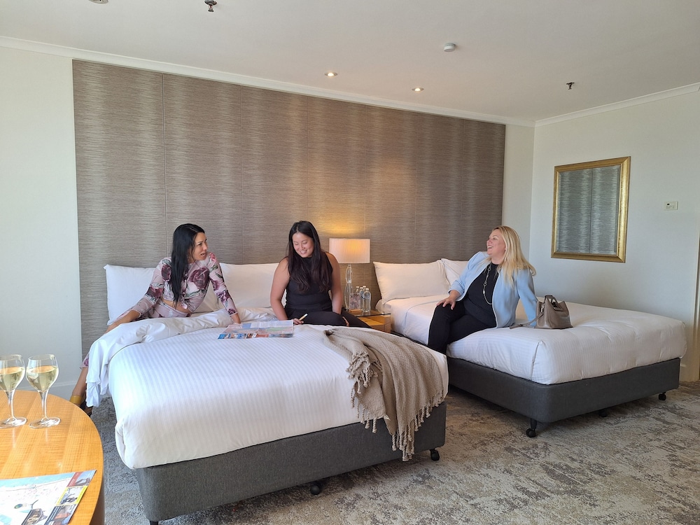 This 5 star hotel is located on the coastline of Perth. The Hotel has a coffee shop, an outdoor swimming pool and a fitness centre/gym.