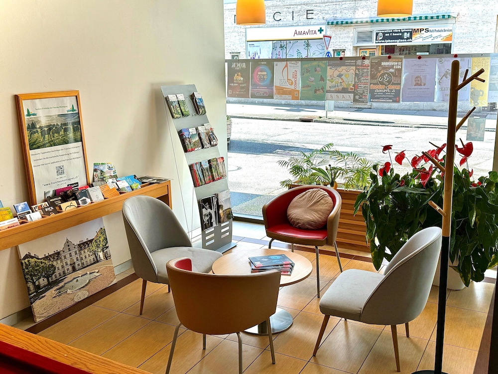 Situated in the heart of the city only a 2-minute walk from the train station the non-smoking ibis Delémont hotel offers you air-conditioned rooms and free WiFi in the entire building.Guests can relax in the bar or take advantage of the 24-hour snack service. Storage rooms for skis and bicycles are also available.Within a 5-minute drive from the Delémont ibis you can reach the industrial area.All guests receive a free pass for all public transport in the Canton of Jura for the duration of their stay.