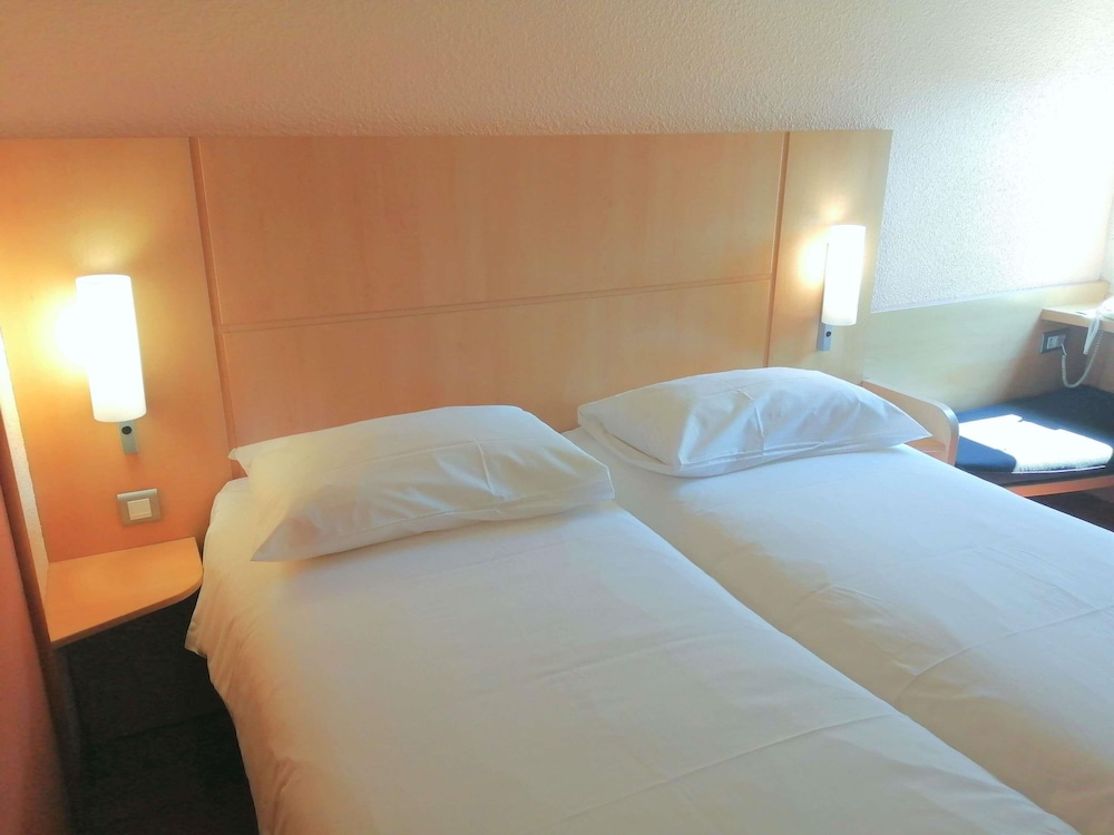 Located a 5-minute drive from Poitiers city centre and a 12-minute drive from Futuroscope Theme Park. The ibis Poitiers Sud is 4.6 km from the train station. It has a 24-hour reception and provides free WiFi access in the soundproofed guest rooms.All the ibis Poitiers Sud rooms have a double bed a desk Internet access a TV with all the main channels as well as a private bathroom.A buffet breakfast composed of sweet and savoury dishes such as eggs fruit salad yogurts and juices is served every day. Pastries baked on site and fresh French Madeleine cakes are also on offer as well as a hot beverage and a piece of fruit to take away. Outside of regular breakfast hours guests can also enjoy a lighter option available from 04:00. There is a Courtepaille restaurant on site as well as a 24-hour bar serves snacks and light meals.Private parking is free on site and Poitiers-Biard Airport is just 5 km away.