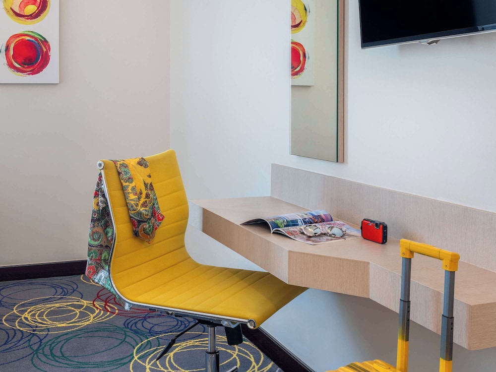 ibis Styles Dragon Mart is a modern 3-star property offering comfortable accommodation east of Dubai. Highlights include a gym, free Wi-Fi and a good location close to Dragon Mart Mall. The hotel is located approximately 15km from Dubai centre, next to the Dubai Dragon Mart Mall; a trading hub for the wholesale purchase of Chinese products. Local bus services provide fast and easy access to other popular Dubai destinations. The hotel is housed in a sleek 21st-century mid-rise building. Facilities include a gym, and free Wi-Fi is available throughout the premises. Standard rooms are decorated in a colourful, contemporary style with carpeted floors and artwork above the bed. Amenities include air-conditioning, tea and coffee equipment, a flat-screen satellite TV, fridge, safe and work desk. The en-suite bathrooms feature a bathtub with integrated shower. The hotel restaurant serves international cuisine in a relaxed setting, and there are plenty of dining opportunities in the vicinity. Free parking is possible onsite. The hotel has a 24-hour reception.