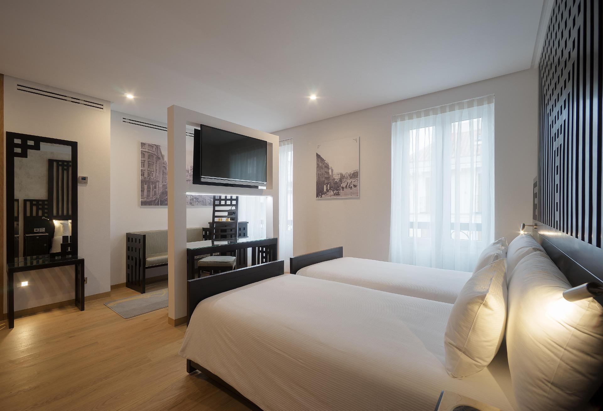 This boutique hotel is perfectly situated on Madrid’s Golden Mile, famous for being one of the most chic and luxury areas of the capital. The city’s most exclusive shops, restaurants and fashion outlets can be found nearby with plenty of places to experience the vibrancy of Madrid. The famous Puerta del Sol, Puerta de Alcala and Parque del Buen Retiro are all within a 15 minute walk. Access to the metro is 500 metres from the hotel and the Madrid-Barajas airport is 11km away. The hotel boasts a stylish and modern décor throughout and provides excellent facilities which include a VIP lounge and private roof terrace.