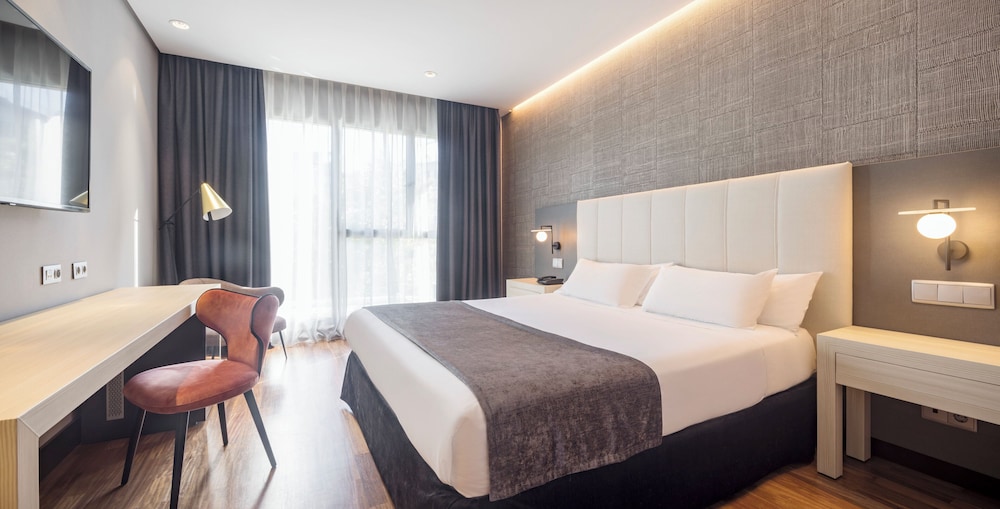 Free Wi-Fi a restaurant with an outdoor terrace and the airport three-and-a-half miles away comfort our guests at the Confortel Alcala Norte. The four-floor Confortel has 212 spacious and well-decorated rooms offering hardwood floors desks in-room safes minibars free bottled water pillow menus free Wi-Fi and satellite TV. Non-smoking rooms are available and some rooms have terraces or balconies. If you don't have a laptop you can check Facebook or surf the internet for free on the lobby computers. The hotel also has a breakfast buffet for a fee a weekday cafe bar and a Mediterranean restaurant with outdoor terrace in the summer. Parking is available for a fee. The Confortel Alcala Norte is on Calle de San Romualdo a half-mile southeast of the Suanzes Metro station and three-and-a-half miles southwest of Madrid-Barajas Airport. Juan Carlos I Park is two miles northeast and the IFEMA Convention Center/Trade Fair is three miles north. The Prado Museum and central Madrid are about six miles sout