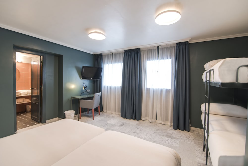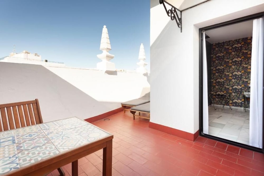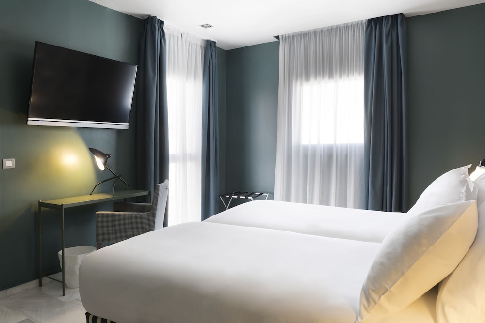 Free Wi-Fi a garden terrace and Seville Cathedral a half-mile away are the chief benefits of a stay at Confortel Puerta de Triana. The six-floor Confortel has 68 modern rooms all with pillowtop bedding in-room safes free Wi-Fi flat-panel TVs with satellite and international channels and mini-bars with free bottled water. Non-smoking rooms are available and some rooms have balconies or terraces. The hotel has a great array of colorful and contemporary public spaces including a lobby living room library relaxation zone TV lounge bar and terrace set in an Andalusian-style garden. The hotel also has lobby computers a breakfast buffet (for a fee) and nearby parking (for a fee). The Confortel is located a quarter-mile northeast of the River Guadalquivir and Puente de Triana bridge and a half-mile northwest of the Seville Cathedral and Giralda. The Calle Sierpes shopping street is a half-mile east and the world's oldest bullring the Plaza de Toros de la Real Maestranza de CaballerĂa de Sevilla is a quarter-mile southeast. If you're coming from Seville Airport the hotel is eight miles southwest.