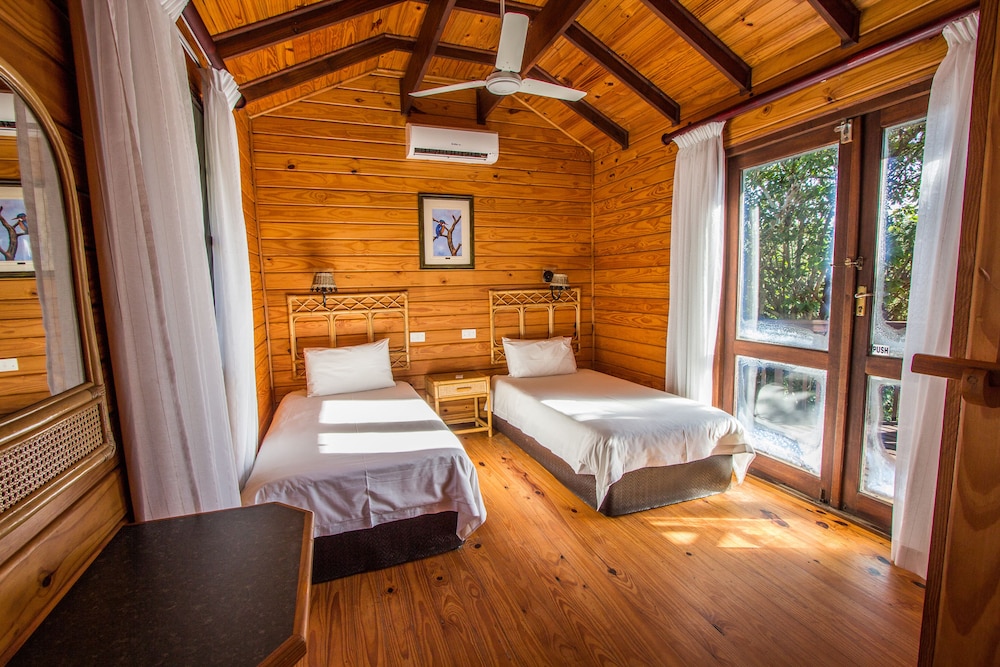 Imvubu Lodge, meaning hippo in Zulu, was inspired by famous Huberta the Hippo; who undertook the historic journey from Zululand to East London. Tucked away in the lush greenbelt zone of Richards Bay, we are adjacent to the scenic Lake Menywa and the unspoilt beaches of the Indian Ocean. The accommodation offers luxurious one and two bedroom chalets, both self-catering and non self-catering. The single self-catering chalet can sleep two people and double chalets can accommodate up to five people. All our self-catering chalets are fully equipped with everything you need for a well-