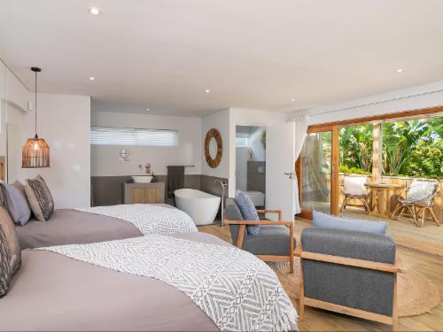 Welcome to In Toto, your ultimate retreat in the heart of the captivating Garden Route in South Africa. Our meticulously styled six-room Guest House offers a truly unique and unforgettable experience. Nestled in the peaceful town of Sedgefield, overlooking the picturesque Swartvlei Lagoon, our location is unrivaled within the enchanting Wilderness area of the Garden Route National Park.Unwind and connect with fellow travelers in our charming courtyard or over a delightful breakfast. For those seeking exclusivity, our exclusive bookings offer the opportunity to gather with loved one