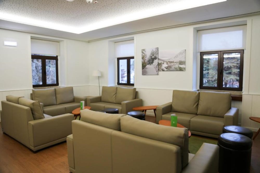 Located in Manteigas, in the heart of Serra da Estrela, the hotel is surrounded by the lush vegetation of the Beira Interior, in the beautiful valley of the River Zêzere. Lovers of winter sports enjoy, in its extensive and pronounced slopes, ideal spaces for the practice of various activities, including the possibility of therapy in the curative waters.The hotel allows contact with nature and the perfect alliance between the bucolic and historic area of mountainous people. The hotel has 64 fully equipped rooms, spread over four buildings, as well as a bar, restaurant, games room, TV lounge, chapel, equipped meeting room and wireless Internet access. Those arriving by car may leave their vehicle in the car park.All rooms are en suite and equipped with a direct dial telephone, TV, minibar, individually regulated heating and a terrace.The hotel features a spa facility and a tennis court.
