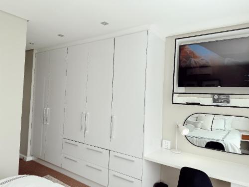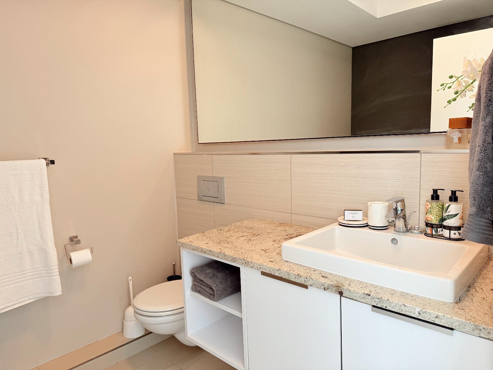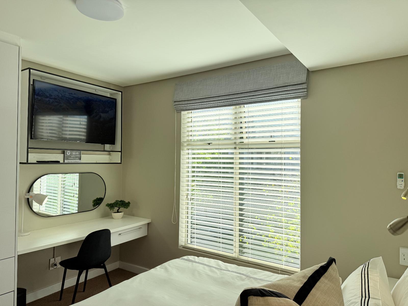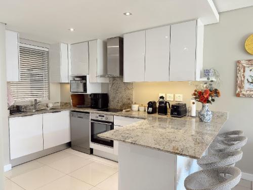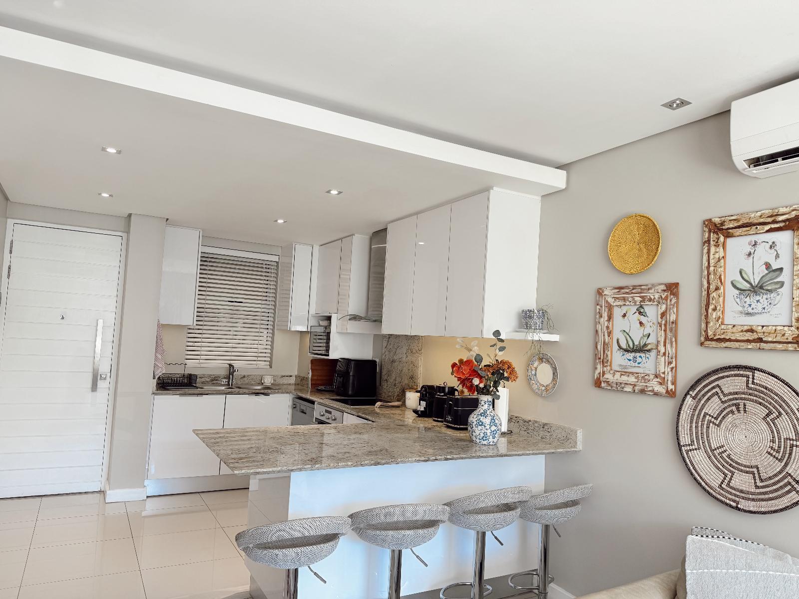 This luxury two-bedroom(Queen and Double bed), two-bathroom apartment located in Eikestad Mall, comfortably sleeps four guests. The master suite features a private en-suite with a separate shower, while the second bathroom serves the rest of the home. The entire space is climate-controlled with air-conditioning and equipped with high-speed Wi-Fi and a Smart TV for all your streaming needs.The contemporary kitchen is fully fitted for self-catering, featuring a refrigerator, microwave, and an air fryer for quick, modern cooking. An integrated washing machine is also included to provi