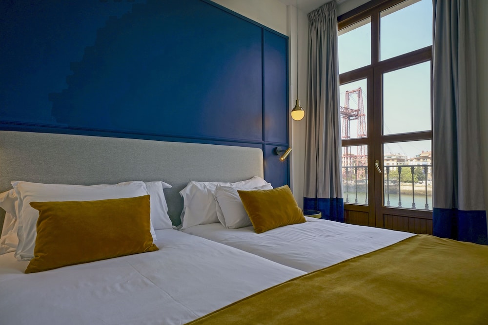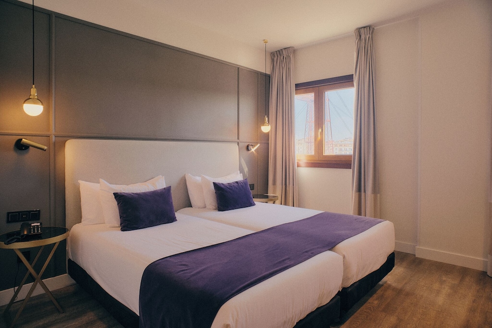 This attractive city hotel is located in the leisure centre of Portugalate, around 12 km from Bilbao. It provides easy access to most places of interest, being only 500 m from the train station and 1 km from the underground station. The inviting Las Arenas Beach is some 400 m away and the port is just 2 km from the establishment. This historical building was totally refurbished but kept its 19th century façade untouched. Located beside the impressive Puente Colgante de Bizkaia' bridge, the residence additionally boasts marvellous views over the Bilbao river estuary and the sea. It comprises 74 rooms, of which 70 are double and 4 are junior suites. Amongst the facilities there is a bar and a TV room, while an à la carte restaurant with highchairs for infants is also available.