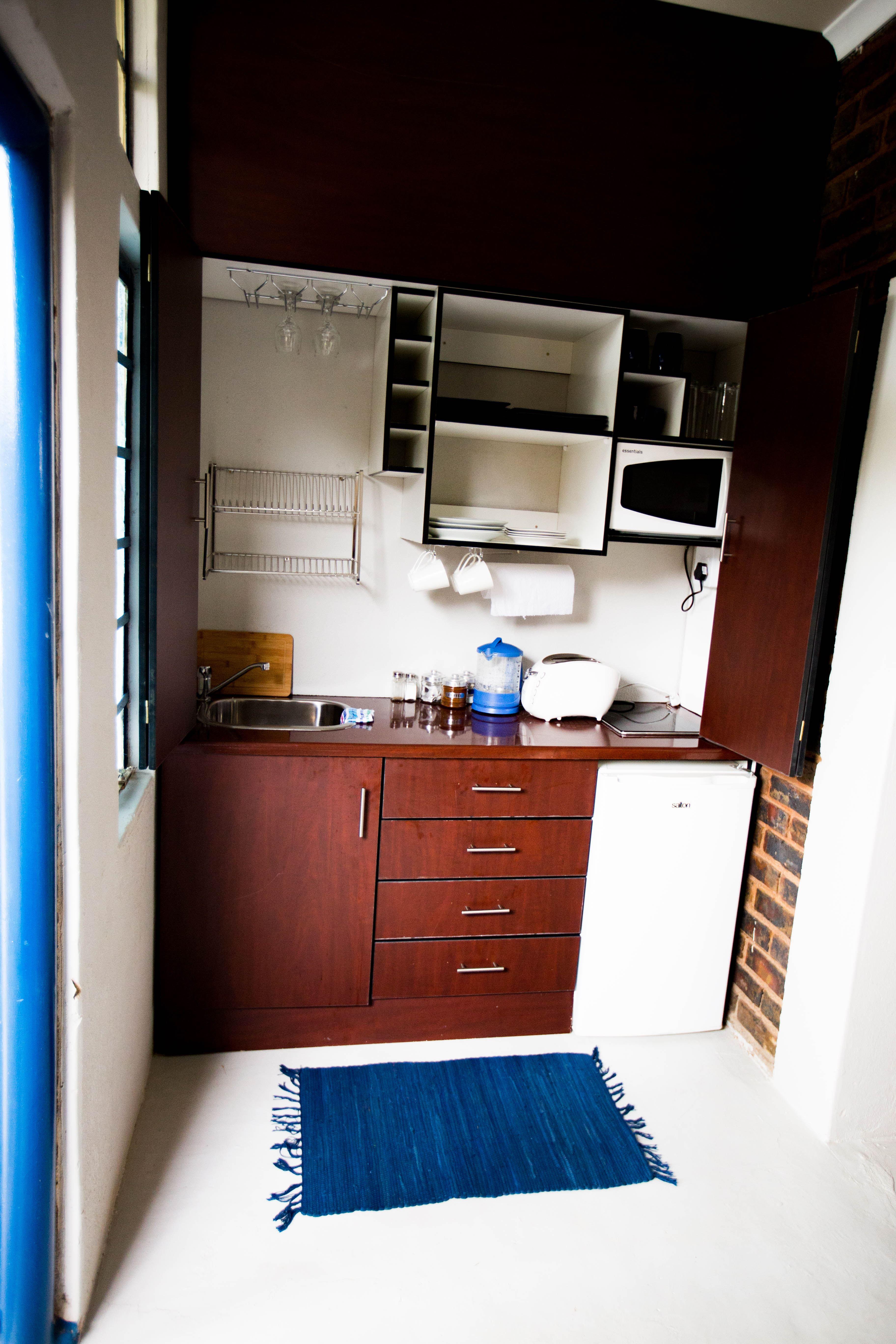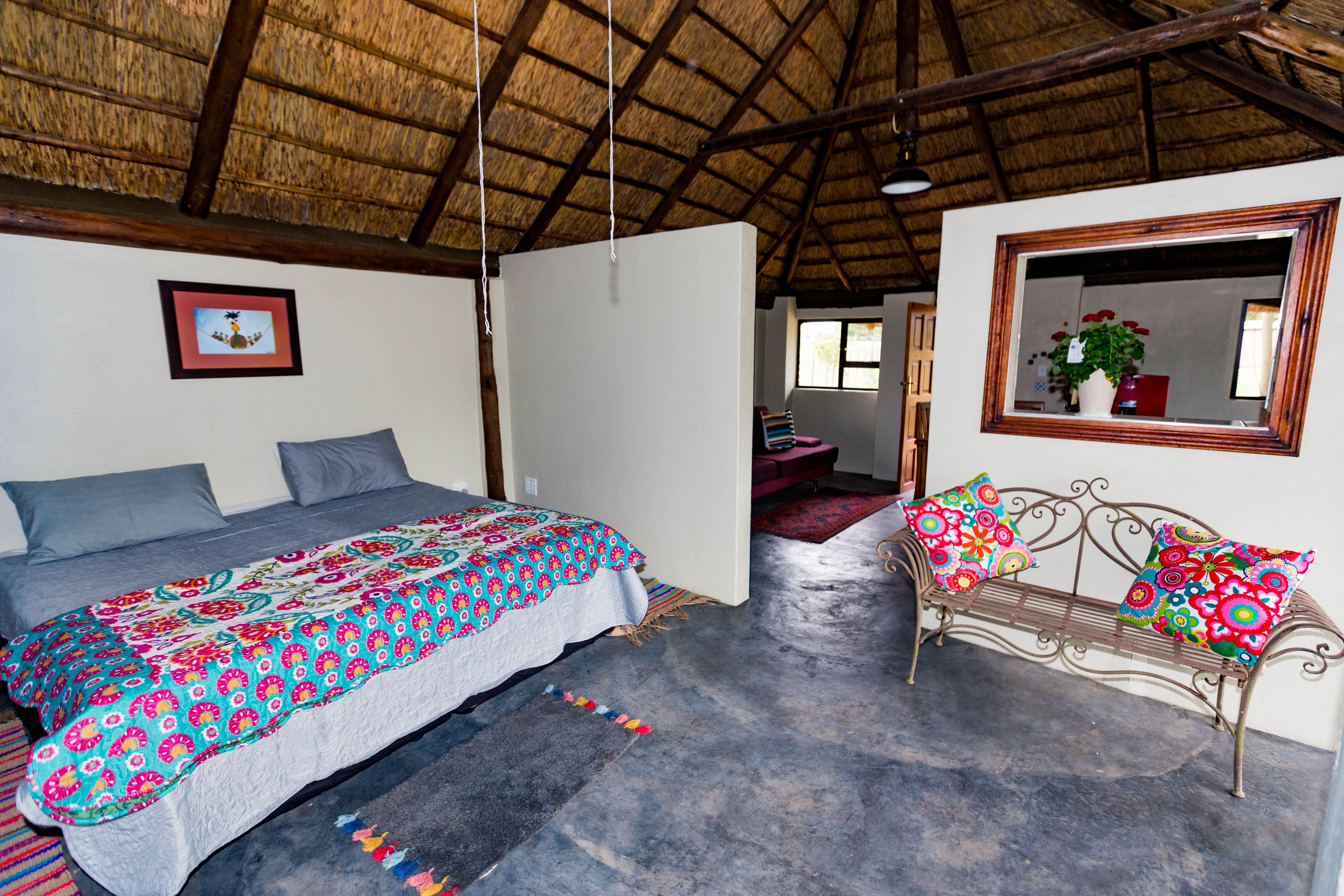 Inyameko BnB is situated on a working small holdings, where we live and run our business. 1. The White Room is part of the original house, but has its own private entrance, huge en suite bathroom and kitchenette. It also has a small braai area and full DSTV. It open up onto the pool area. There is an adjacent room that is suitable for an additional couple or for children. the bathroom for this room is across a private passage and not en suite. 2. The Stables are coulourful and quirky, functional units each with a combined living/sleeping area, en suite "wet room"