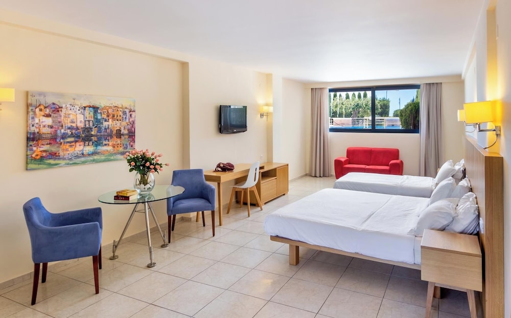 The hotel offers following facilities reception limited hours, lobby, bar, WiFi, breakfast area, tennis court, gym, swimming pool, children's pool, sun beds and umbrellas. All rooms have air conditioning centrally controlled, telephone, satellite TV, safety box, Wi Fi Internet access, kitchenette, bathroom with shower or bathtub, WC, hairdryer and balcony or terrace.**Important: Arrivals outside reception opening hours will find a note at the reception in order to receive the key. While booking this hotel you are requested to send your flight number and arrival time.**Address: 48100 Kanali, Epiros, Greece.